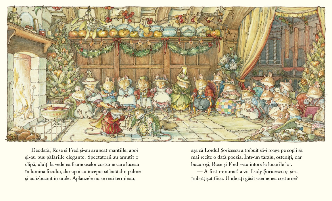 Șoriceii sunt harnici și trebăluiesc încoace și-ncolo toată ziua, dar își fac timp și pentru jocuri și petreceri. Fie că e vorba de ziua unui șoricel, fie de o nuntă așteptată cu nerăbdare sau doar de prima zi a unui nou anotimp, șoriceii se bucură de orice prilej pentru a se întâlni și a sărbători împreună cu mese întinse și voie bună.