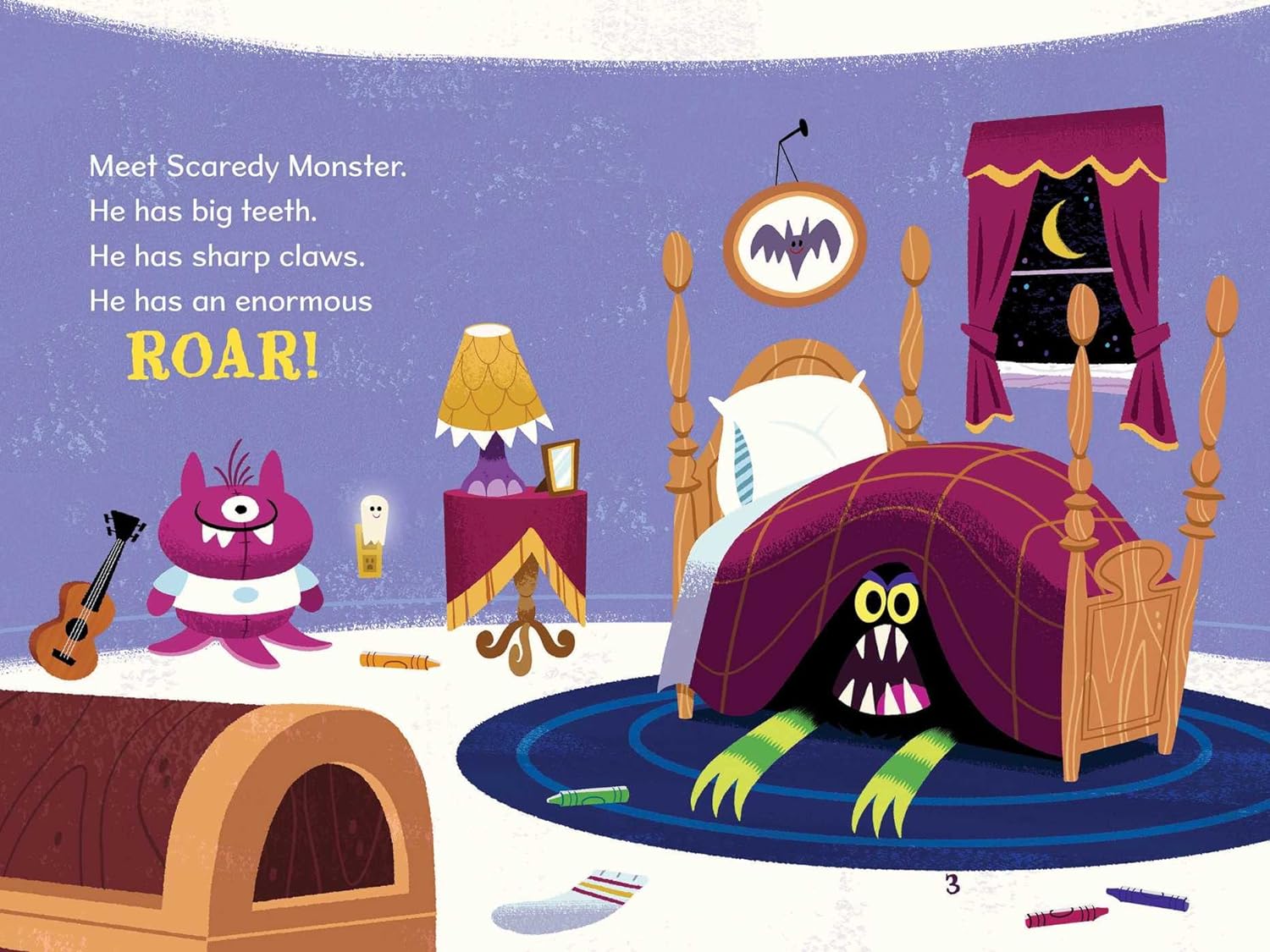 Join Scaredy Monster as he overcomes his fears of losing a tooth, riding a bike, and going to his first sleepover. With some help from Mommy Monster, Scaredy discovers he’s much braver than he thought—and he finds ways to feel safe and happy while doing scary things!