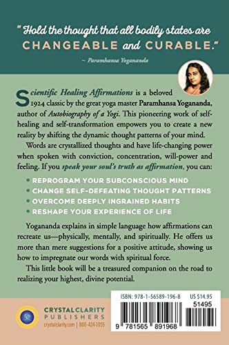 Scientific Healing Affirmations is a beloved classic book of the great yoga master, Paramhansa Yogananda (1893-1952), author of Autobiography of a Yogi. It is a pioneering work of self-healing and self-transformation, exploring the marvelous power of our mind.