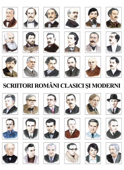 Setul contine 36 de portrete color ale scriitorilor români clasici și moderni.