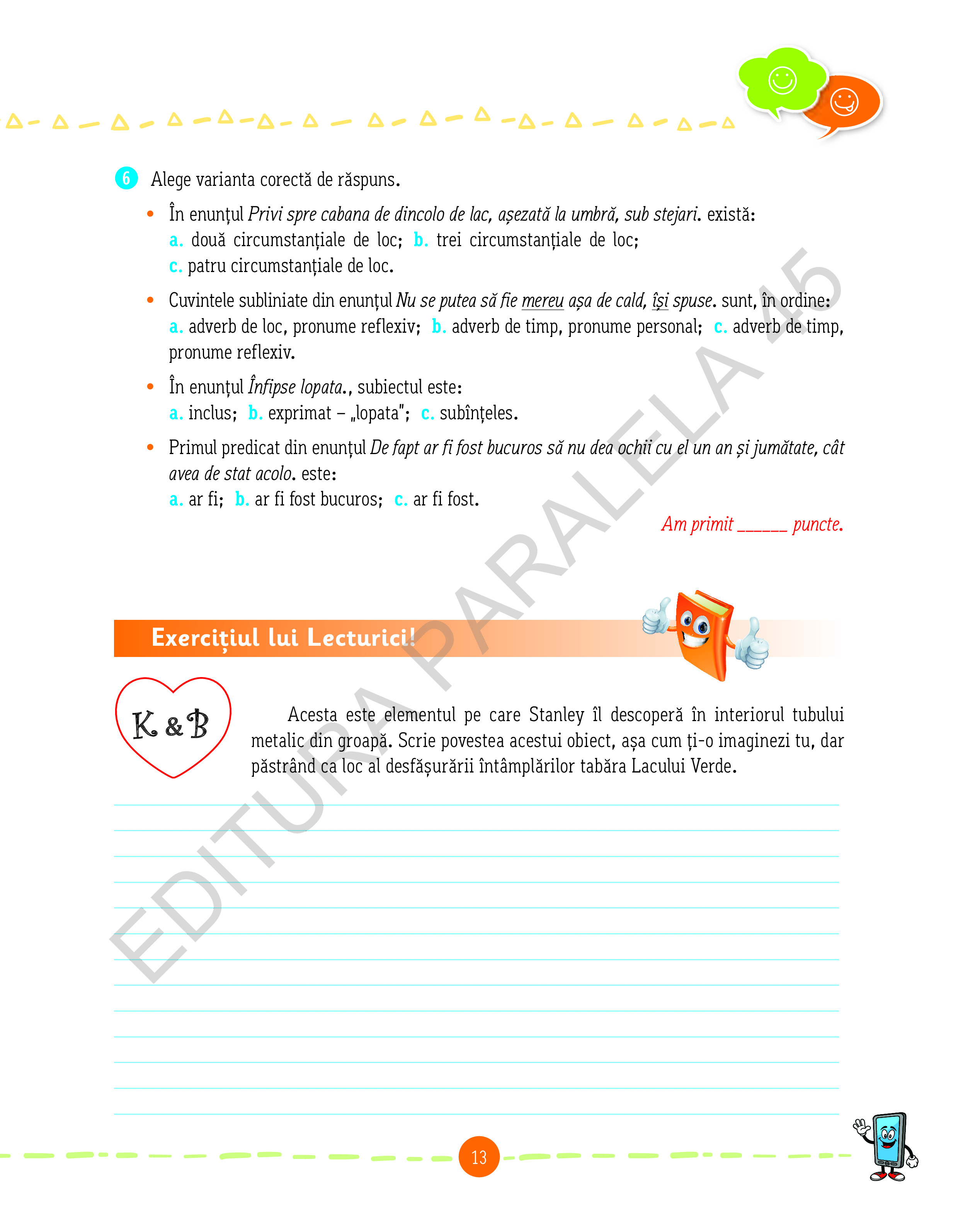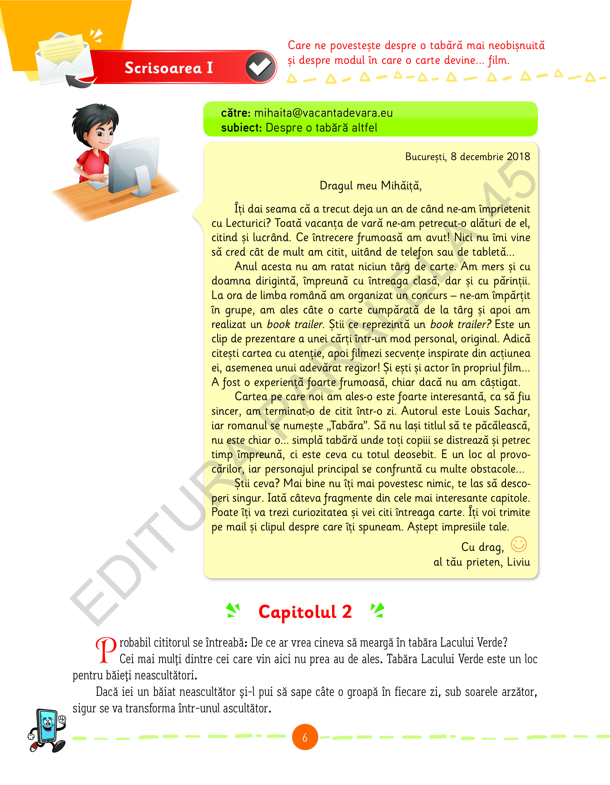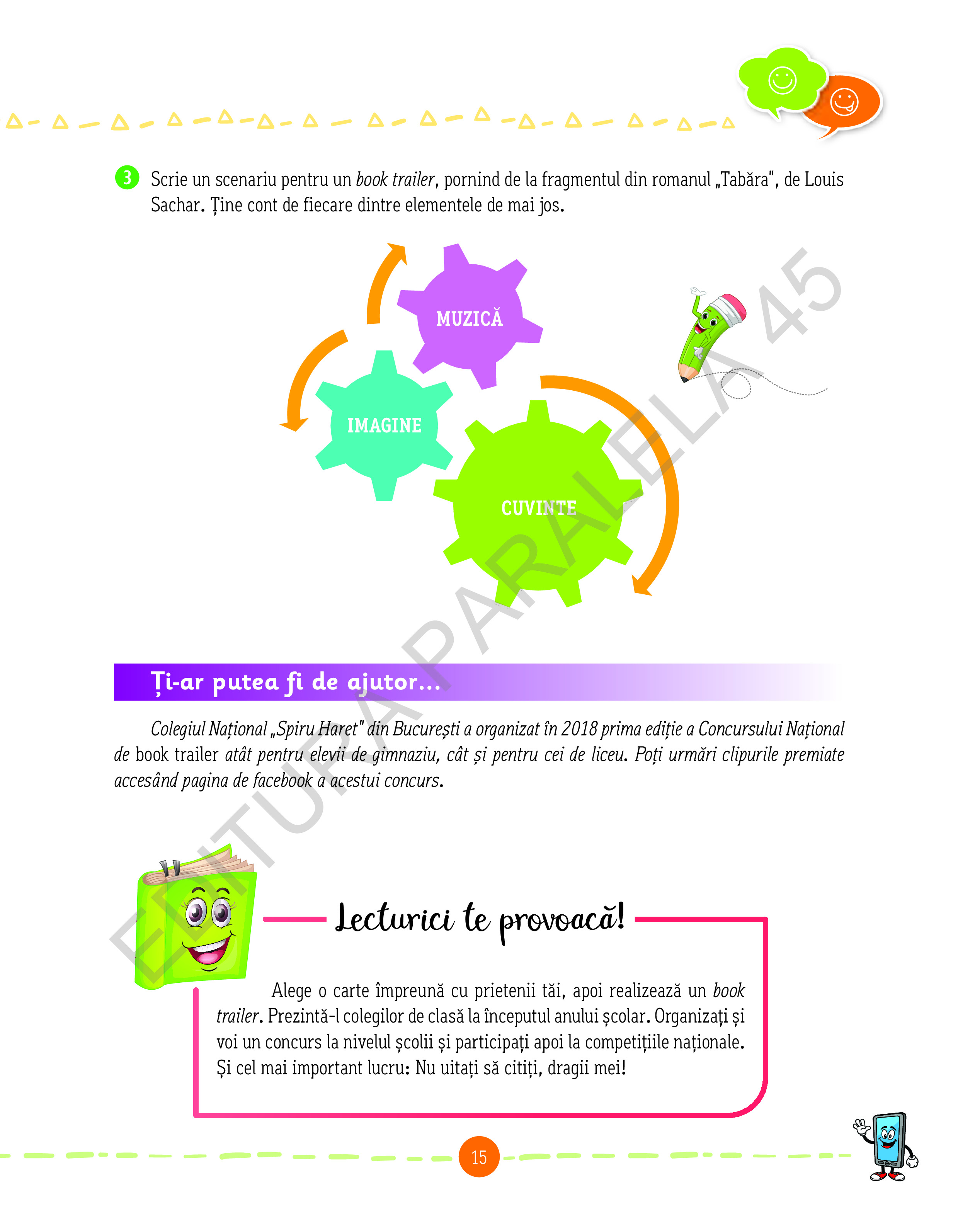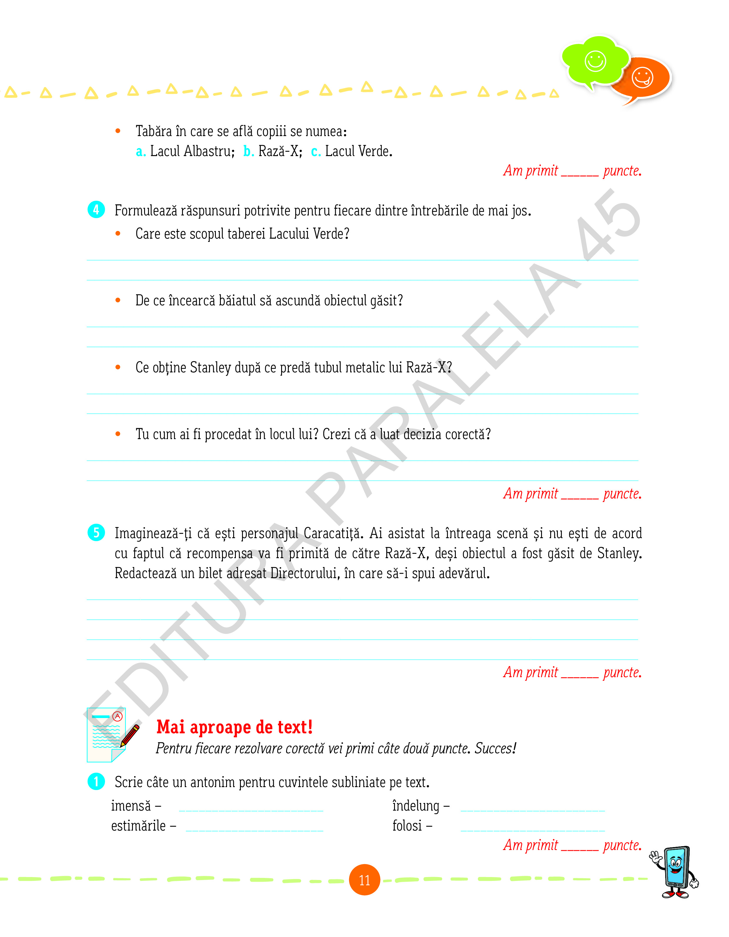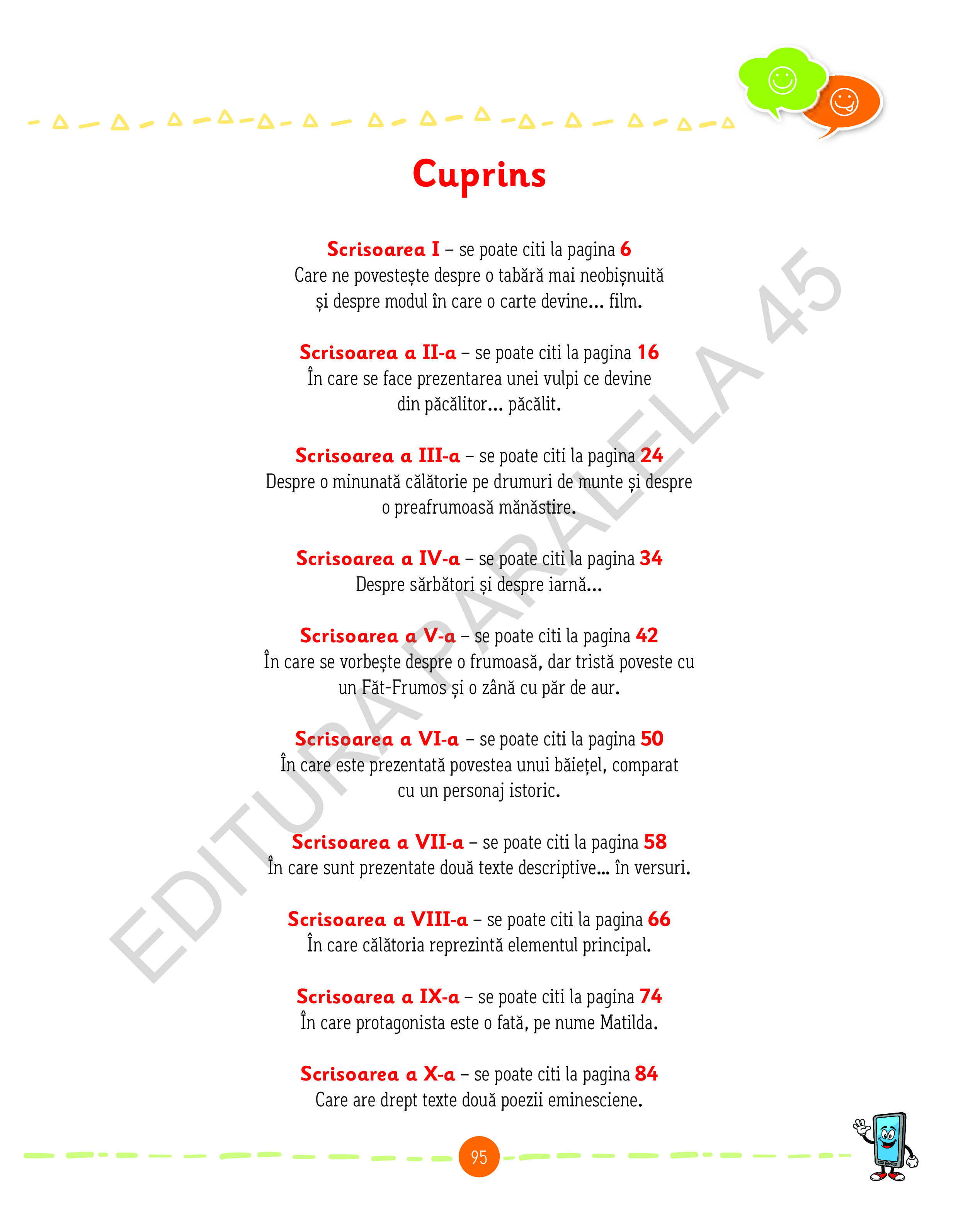 Împreună cu aceştia, te vei simţi mulţumit şi bucuros când vei desluşi tainele literaturii în rubrica Descoperim textul! Alături de ei, creativitatea şi imaginaţia ta vor fi de neînvins în rezolvarea activităţilor din rubrica Mai aproape de text!