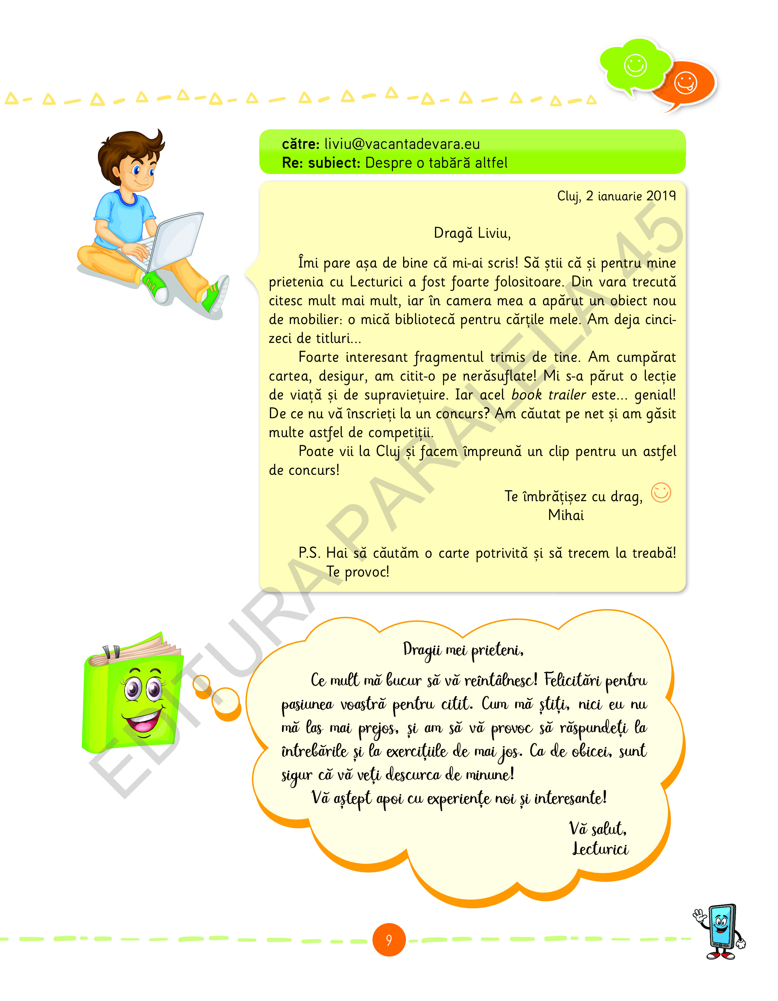 Te provocăm şi noi pe tine să ţi-i faci prieteni pe copiii din carte şi pe isteţul ghid Lecturici!