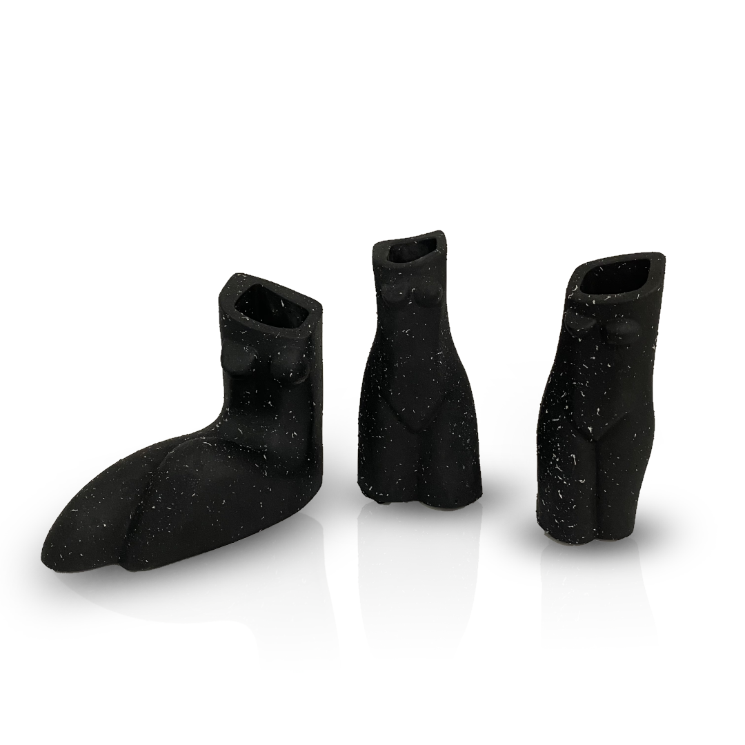 Setul Tres Comas Negru Granit este format din trei vaze decorative. Siluetele grațioase feminine sunt pregătite pentru a oferi spațiului tău o notă modernă. Decorațiunile sunt realizate manual din ipsos și nu țin apa.