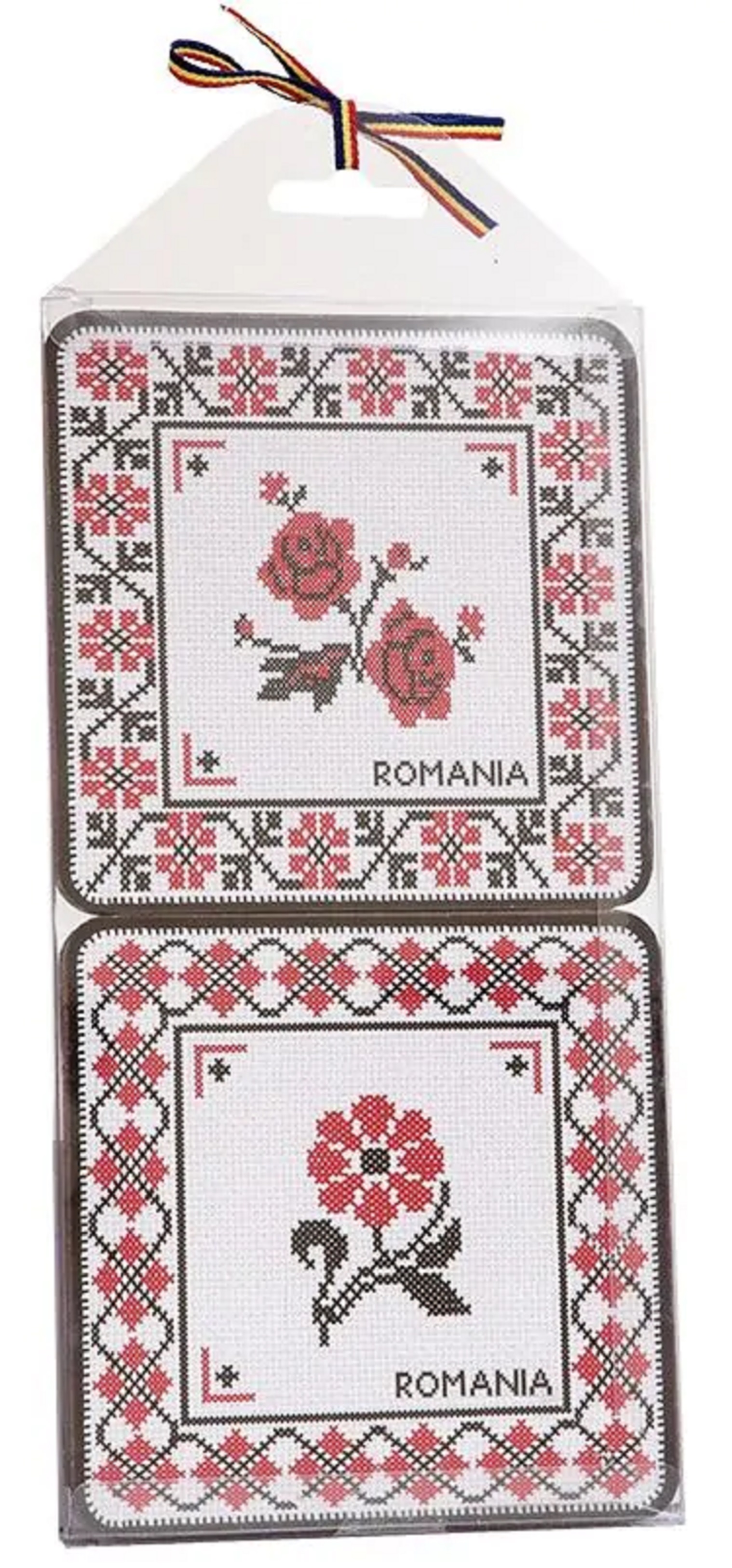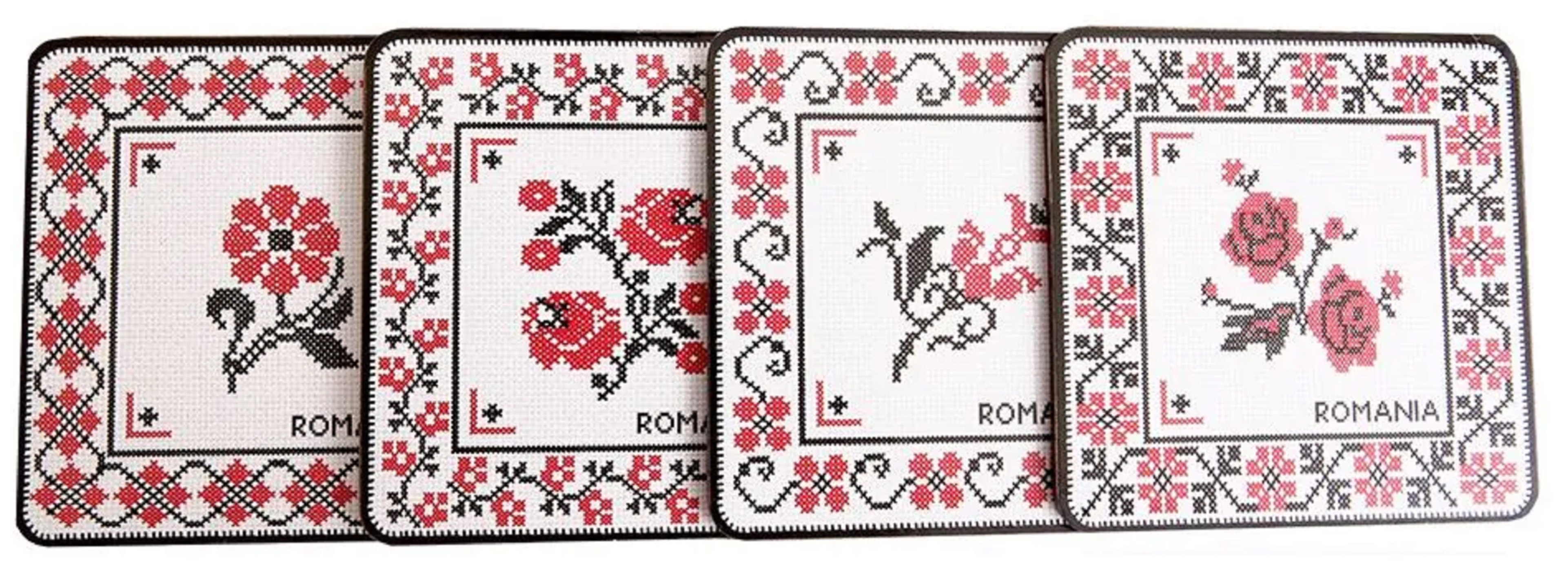 Set 4 suporturi pahare - Cusaturi romanesti pe etamina