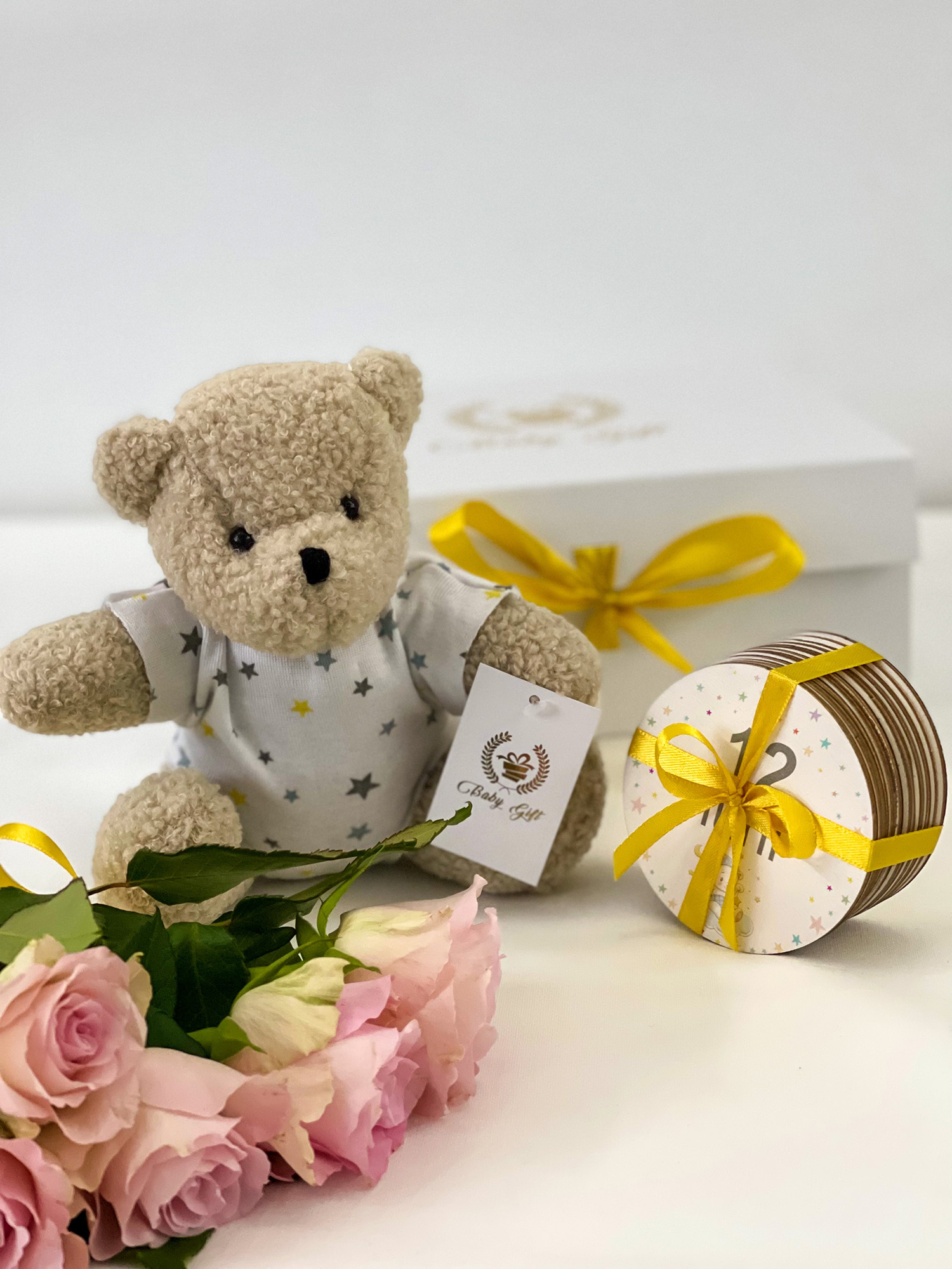 Setul Milestones Star este cadoul perfect pentru prima vizita a unui bebelus sau pentru botez.