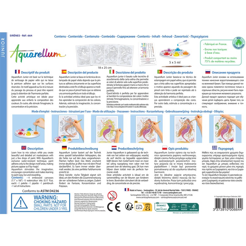 quarellum Junior se bazeaza pe tehnica sertisajului pe hartie velina care lasa acuarela sa adere doar in spatiile rezervate: motivele apar pe masura ce pensula aluneca pe plansa si pot fi repictate pana la obtinerea armoniei perfecte.