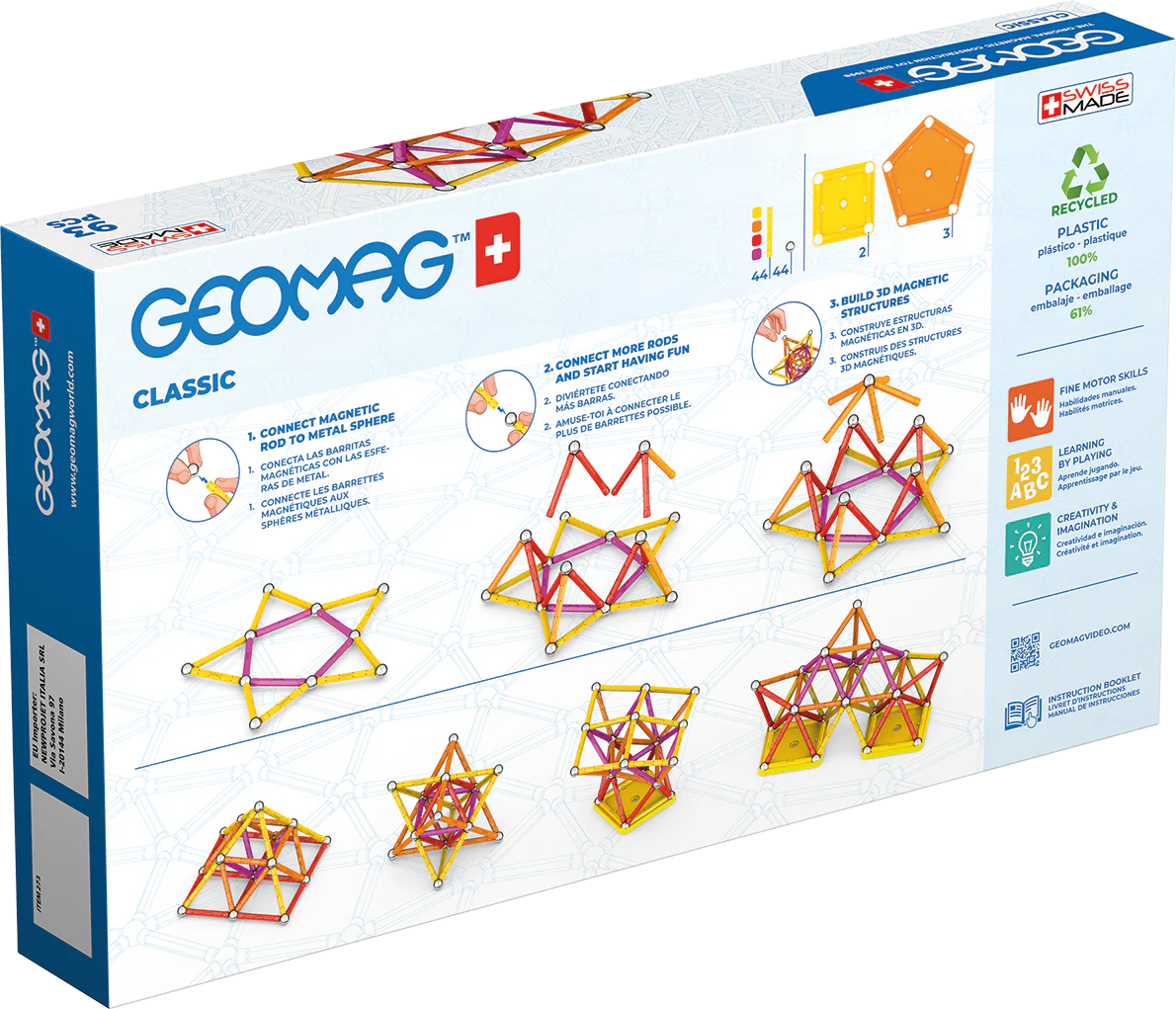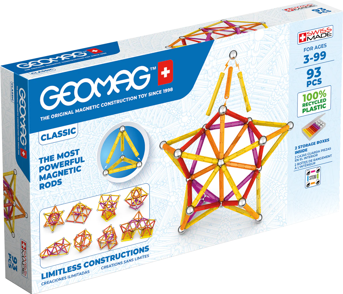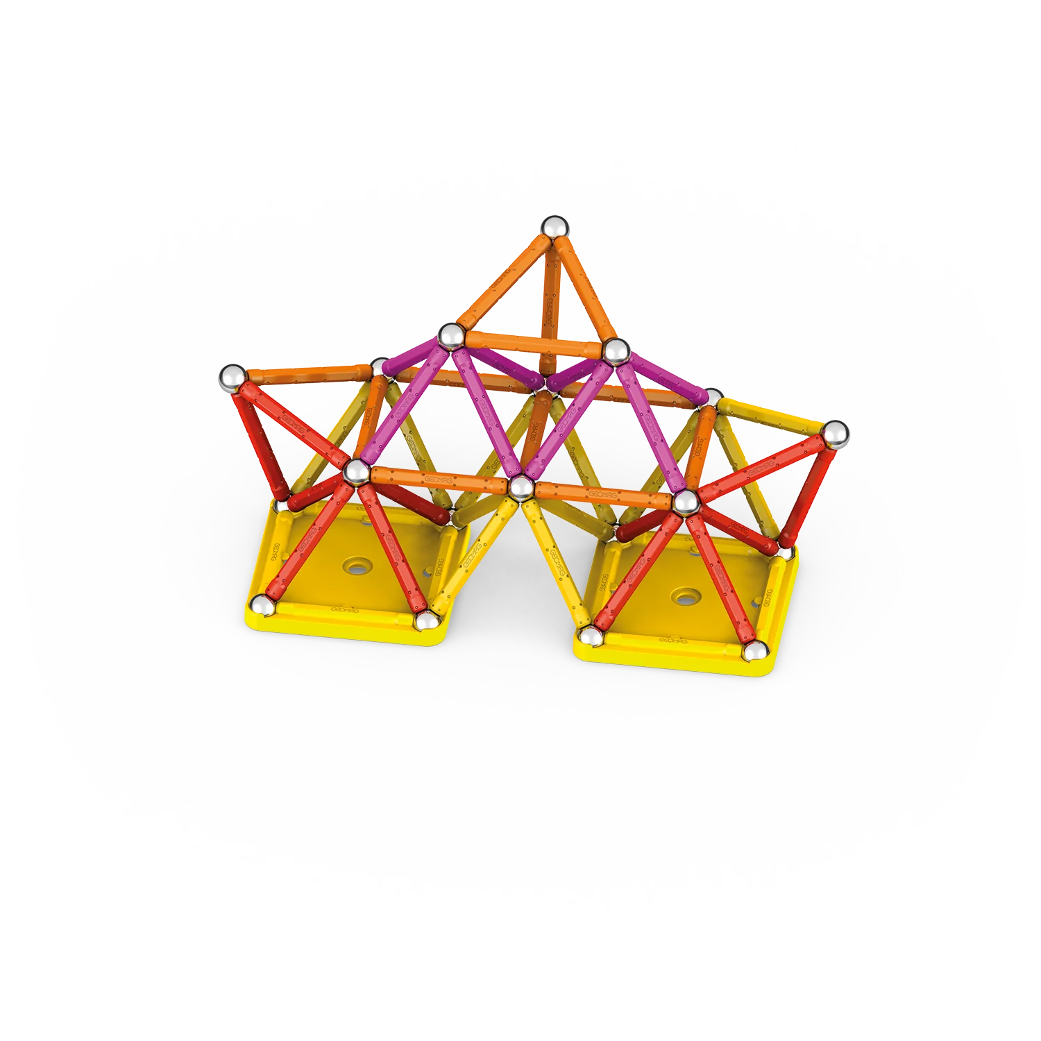 Geomag este un sistem inventiv de constructii simple, realizat din tije magnetice, sfere de otel si alte componente colorate. Datorita sistemului structural simplu, poate fi creat un numar infinit de forme.