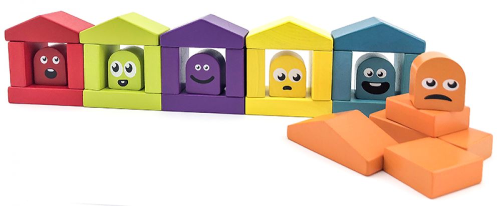 Set de constructie 30 de piese din lemn, frumos colorate.
