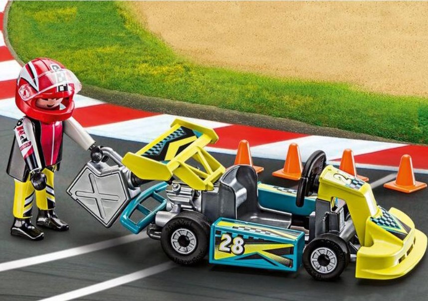 Pastrati emotia unei curse cu masina pe pista oriunde mergeti cu un set portabil - masinuta de curse de la PLAYMOBIL. Setul include un pilot, o masina si conuri de trafic pentru a marca zona de oprire. Cand ati terminat joaca, pur si simplu depozitati piesele in cutie pana la jocul urmator!