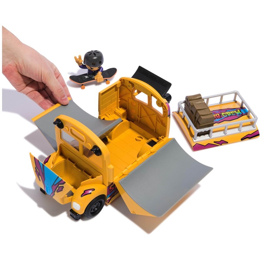Fa-ti o placa pentru deget cu stil cu Tech Deck 2-in-1 Autobuz Ultra Transformer Sk8. Plimba-te cu Autobuzul Skate cu anvelope de lucru reale. Acest skatepark se pliaza cu 3 rampe pentru a-ti exersa abilitatile de skateboarding. Foloseste partea de sus a Autobuzului Skate Bus pentru a te misca si a crea noi combinatii. Pluteste in aer cu doua sferturi de teava si cu rampa de pe capota autobuzului. Fixeaza membrul echipei de skateboard pe placa de skateboard si incepe sa exersezi tehnicile corecte. Scaneaza codul QR pentru tutoriale video pentru a studia miscarile preferate. Sa faci ordine este usor cu Autobuzul Sk8. Rabateaza rampele si asaza figurina Echipa Sk8 si placa de deget in interior pentru depozitare si ia-ti aventurile in deplasare. Colectioneaza toate cele 15 figurine Echipa Sk8 pentru a-ti creste nivelul colectiei (vandute separat). Plimba-te cu noile tale skateboard-uri cu degetul pe seria X-Connect. Construieste seturile de rampe Quarter Bowl Ruckus sau Pyramid Shredder 2.0 (fiecare se vinde separat) pentru a-ti distruge placile de skateboarding pe obstacolele preferate de pe placa de deget, cum ar fi Tech Deck Skatepark. Exista o multime de punti, figuri de jucarie si seturi de joaca de colectionat! Da-te cu placa, fa intoarceri si grind-uri cu placile de deget Tech Deck si BMX de la companii reale de skating! Mini skateboard-urile Tech Deck pentru degete si seturile de rampa reprezinta cadoul perfect de jucarii pentru fetele de 6-8 ani care iubesc jucariile mici, jucariile cool, jucariile actuale. Daca sunteti in cautarea unor jucarii pentru baieti de 3 ani, luati in considerare Tech Decks ca o alternativa la masinile de jucarie ca si jucarii pentru baieti cu varsta de 6-8 ani. Ia astazi acasa Autobuzul Ultra Tech Deck Sk8 si invata sa te dai cu placa de deget.