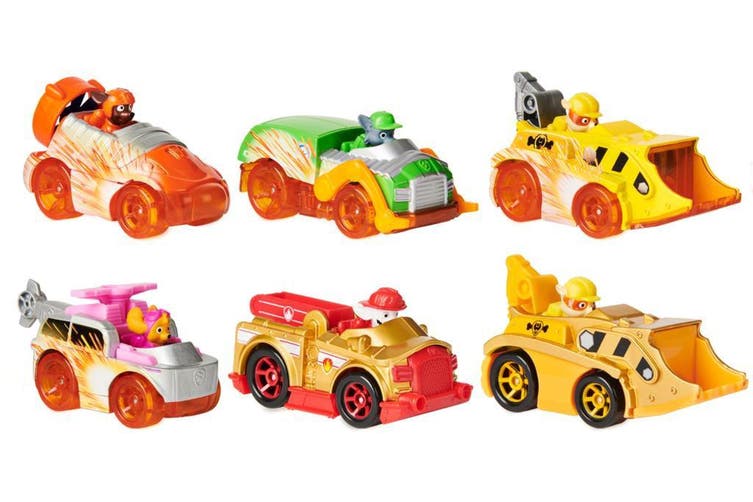 Spin Master Entertainment produce și show-ul TV PAW Patrol, care este difuzat pe Nickelodeon Jr. Găsiți vehiculele True Metal din celebra serie TV Paw Patrol , Paw Patrol ! Veți putea călători peste tot datorită vehiculelor de teren . Două vehicule cu tematică de zăpadă îi vor permite copilului să - și imagineze și mai multe povești în medii diferite .