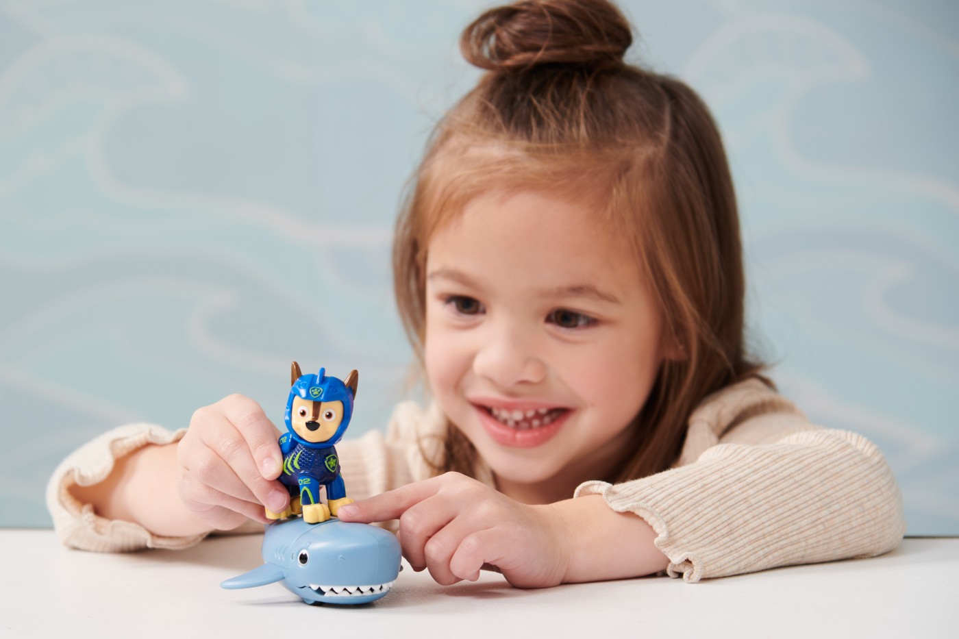 Pregateste-te pentru aventuri de salvare incitante pe mare alaturi de catelusii tai preferati si noii lor prieteni acvatici si insoteste-i in misiuni de salvare incitante cu ajutorul cateilor din Patrula Catelusilor, Catelusii Acvatici. Acest set de figurine de actiune ii includ pe catelusi, in noile uniforme de neopren, si pe prietenii sai de incredere . Îndragitii catelusi din Patrula Catelusilor sunt gata sa plece in actiune. Ataseaza-i pe catelusi pe aripioarele de pe spatele rechinului si roteste rechinul inainte pentru a-i activa muscatura de rechin, in timp ce pleci in misiunea de salvare si devii eroul zilei. Cu detalii autentice si un stil original, acest set minunat inglobeaza toata distractia subacvatica din serialul TV de succes. Pentru misiuni si mai interesante inspirate din serial, colectioneaza toate figurinele si vehiculele de jucarie Patrula Catelusilor, Catelusii Acvatici, alaturi de vehiculul de echipa Whale Patroller/Patrulatorul Balena (fiecare vandut separat) pentru ore nesfarsite de aventuri pline de actiune. Cu jucariile Patrula Catelusilor, copiii isi pot explora imaginatia si isi pot dezvolta abilitatile motorii, prin jocuri de simulare, in timp ce aduc la viata scenele preferate din serial. Figurinele de actiune, masinile de jucarie, seturile de joaca si animalele de plus Patrula Catelusilor sunt jucariile perfecte pentru baietii si fetele cu varsta de cel putin 3 ani. Ia acasa chiar astazi aventura Patrula Catelusilor: Catelusii Acvatici. Acest pachet contine persoanejele: Chase si Rechinul.