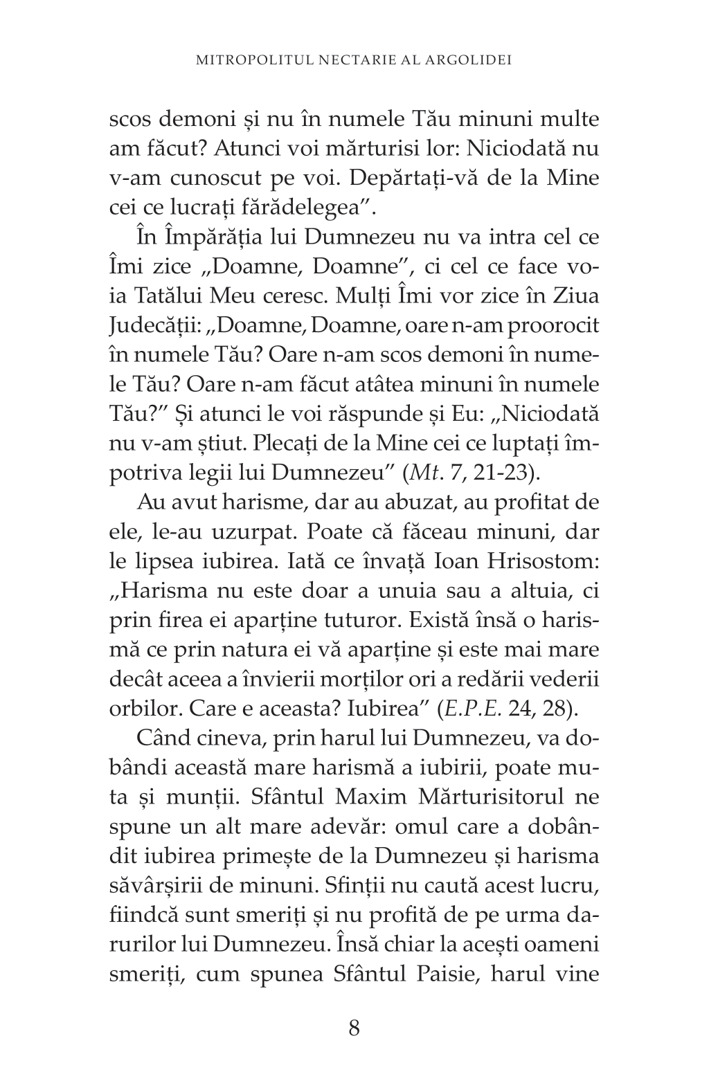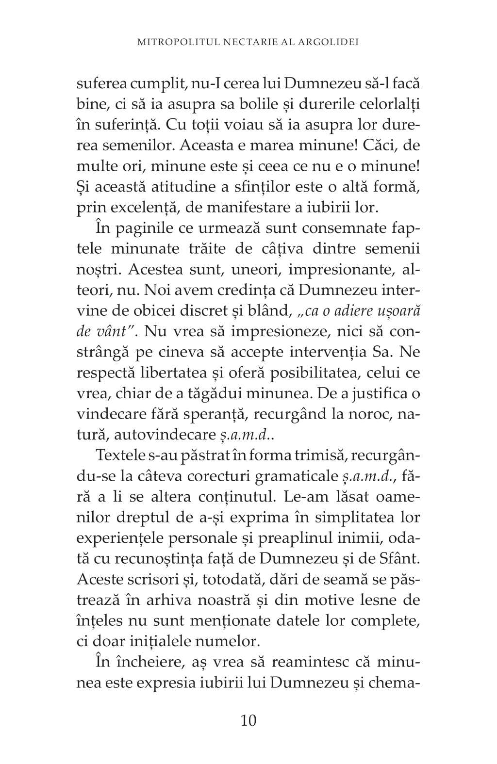 „Mulțumită acestei încercări am învățat multe și, mai ales, să‑L iubesc pe Dumnezeu, să mă rog cu adevărat, cu credință și străpungere de inimă și să nădăjduiesc (ceva ce uitasem înainte de a mă îmbolnăvi, când le vedeam pe toate în negru, zadarnice, fără rost, când mă împotriveam continuu căii Sale și renunțasem la propria viață).