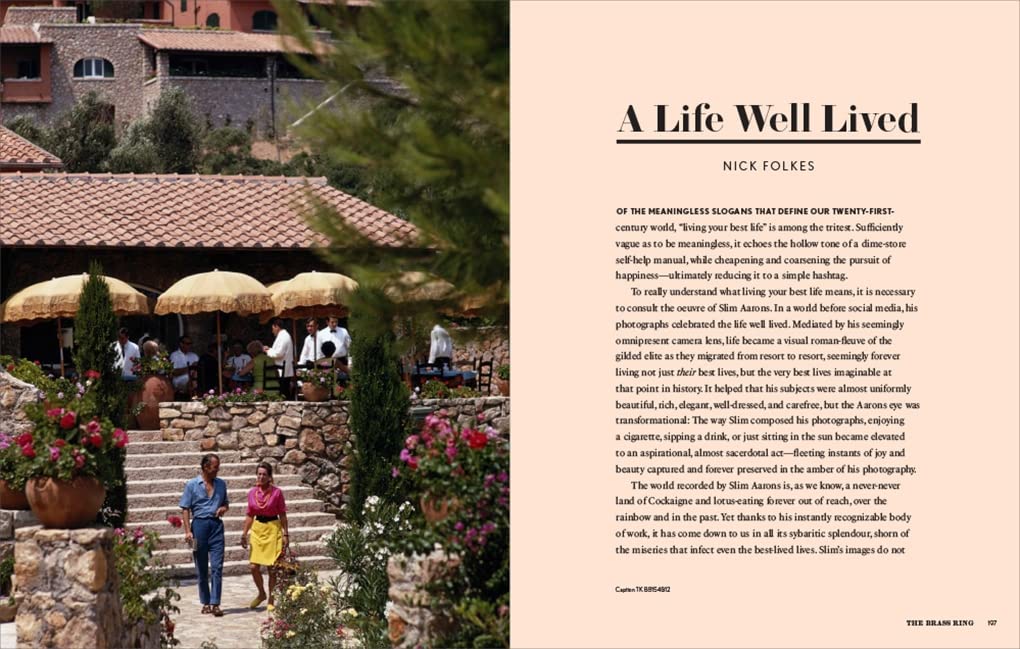 This luxe edition provides a deep and comprehensive look at the groundbreaking career of Slim Aarons, spanning five decades. The book begins with Slim’s fieldwork as an army photographer and continues through his fledgling days in Hollywood, opening the LIFE bureau in Rome, doing fashion and travel shoots for Holiday , and finally traveling the world for Town & Country .
