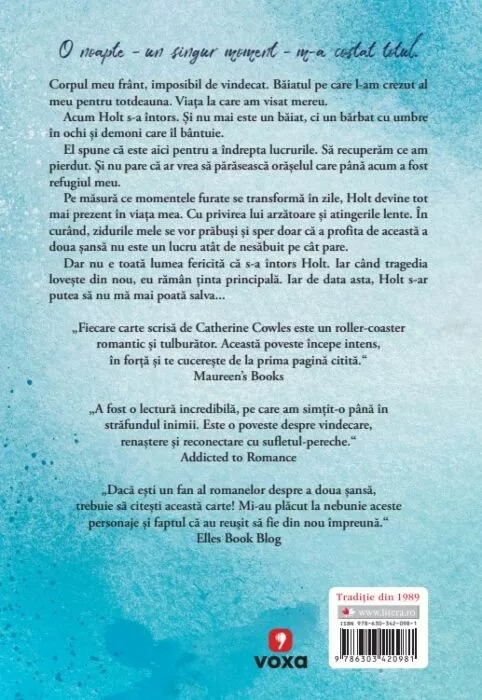 Pe măsură ce momentele furate se transformă în zile, Holt devine tot mai prezent în viața mea. Cu privirea lui arzătoare și atingerile lente. În curând, zidurile mele se vor prăbuși și sper doar că a profita de această a doua șansă nu este un lucru atât de nesăbuit pe cât pare.