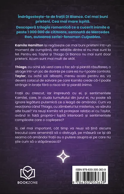 Frații au crescut, iar împreună cu ei, și sentimentele Kamilei, care, în ciuda tumultului din jurul ei, nu poate să ignore legătura puternică ce o leagă de amândoi. Când viața ei începe să se destrame – familia se rupe, iar prietenele o trădează –, Kamila va avea nevoie mai mult ca niciodată de frații Di Bianco. Cum va reacționa când Thiago, cu zâmbetul lui misterios, va săruta alte buze? Va reuși Kamila să protejeze relația ei cu Taylor, având în față propria-i luptă interioară și sentimentele complicate care o copleșesc?