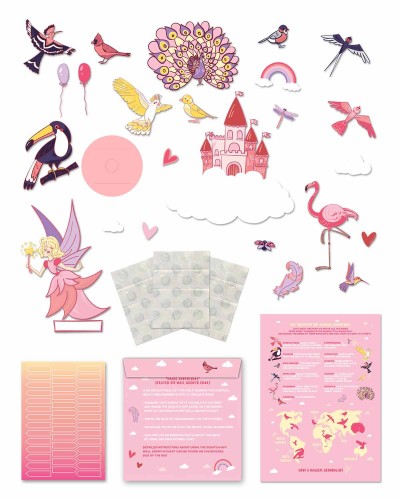 Sticker de perete cu ajutorul caruia puteti masura ritmul cresterii copiilor, in acelasi timp decorand camera intr-un stil magic. Cutia sa poate fi transformata intr-o cutie de amintiri pentru viitorii adulti.