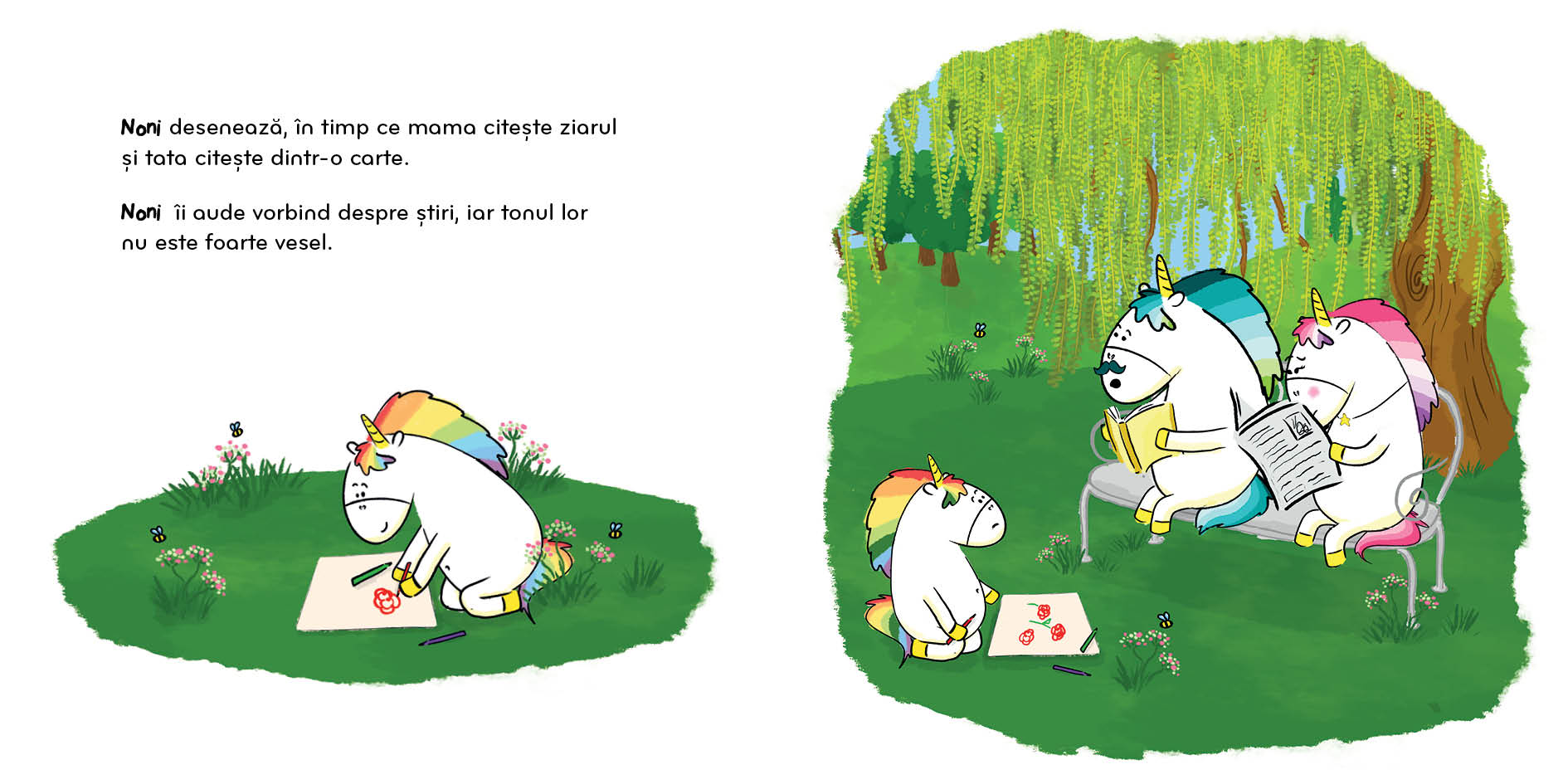 Noni este un mic unicorn ca toți ceilalți, doar că părul din coama sa își schimbă culorile în funcție de emoțiile sale!
