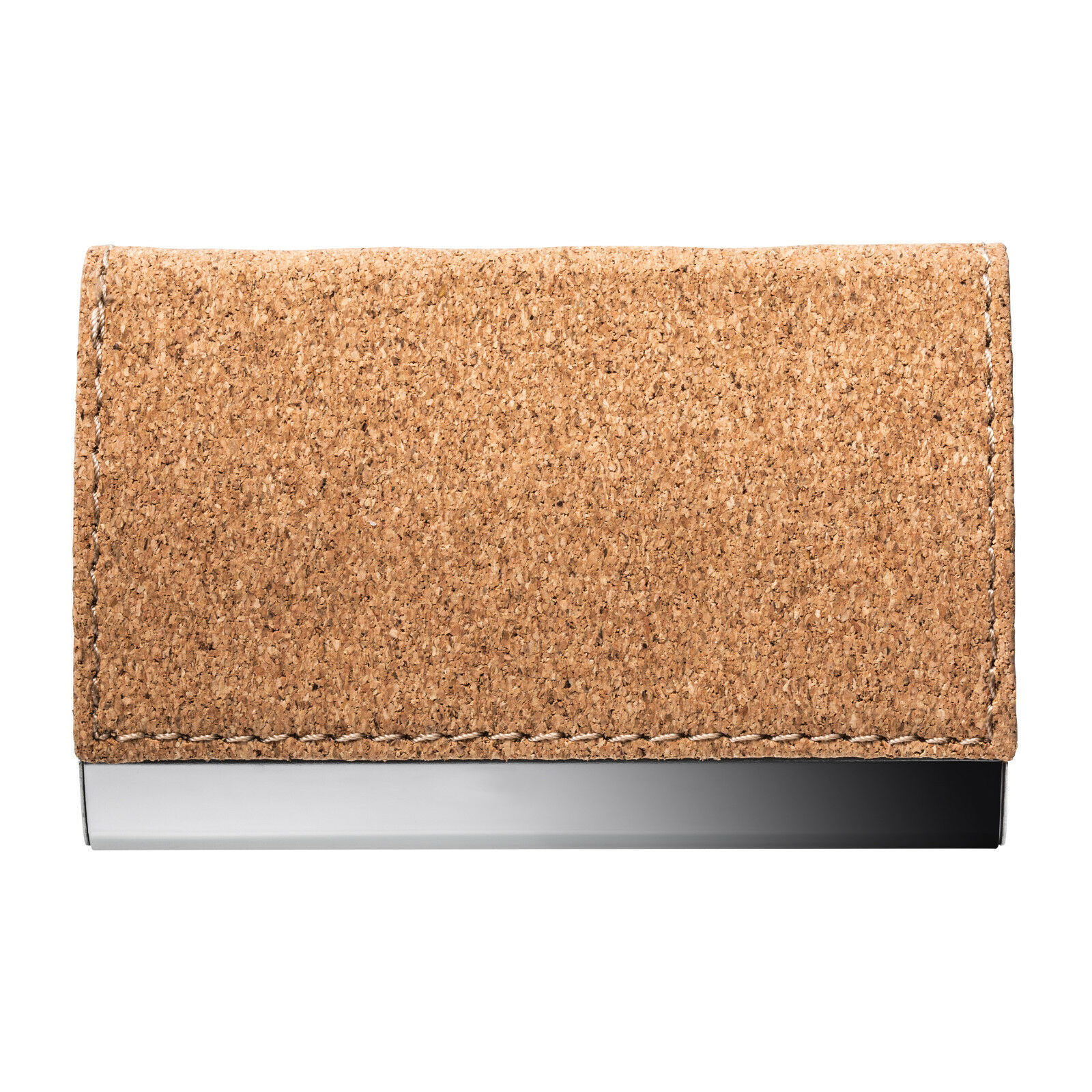 Suport pentru cărțile de vizită fabricat din metal, partea superioară este acoperită cu plută.