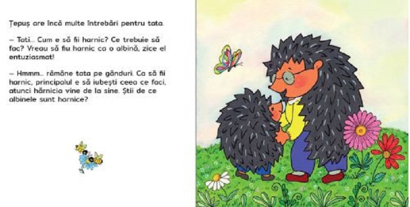 Micul arici îl ajută pe tata în grădină, pe mama la făcut salata și înțelege că atunci când faci un lucru cu plăcere, hărnicia vine de la sine.