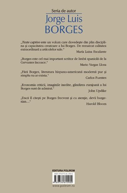 „Texte captive este un volum care dovedeste din plin disciplina si capacitatea creatoare a lui Borges. De remarcat calitatea extraordinara a articolelor sale.” (María Luisa Escalante)