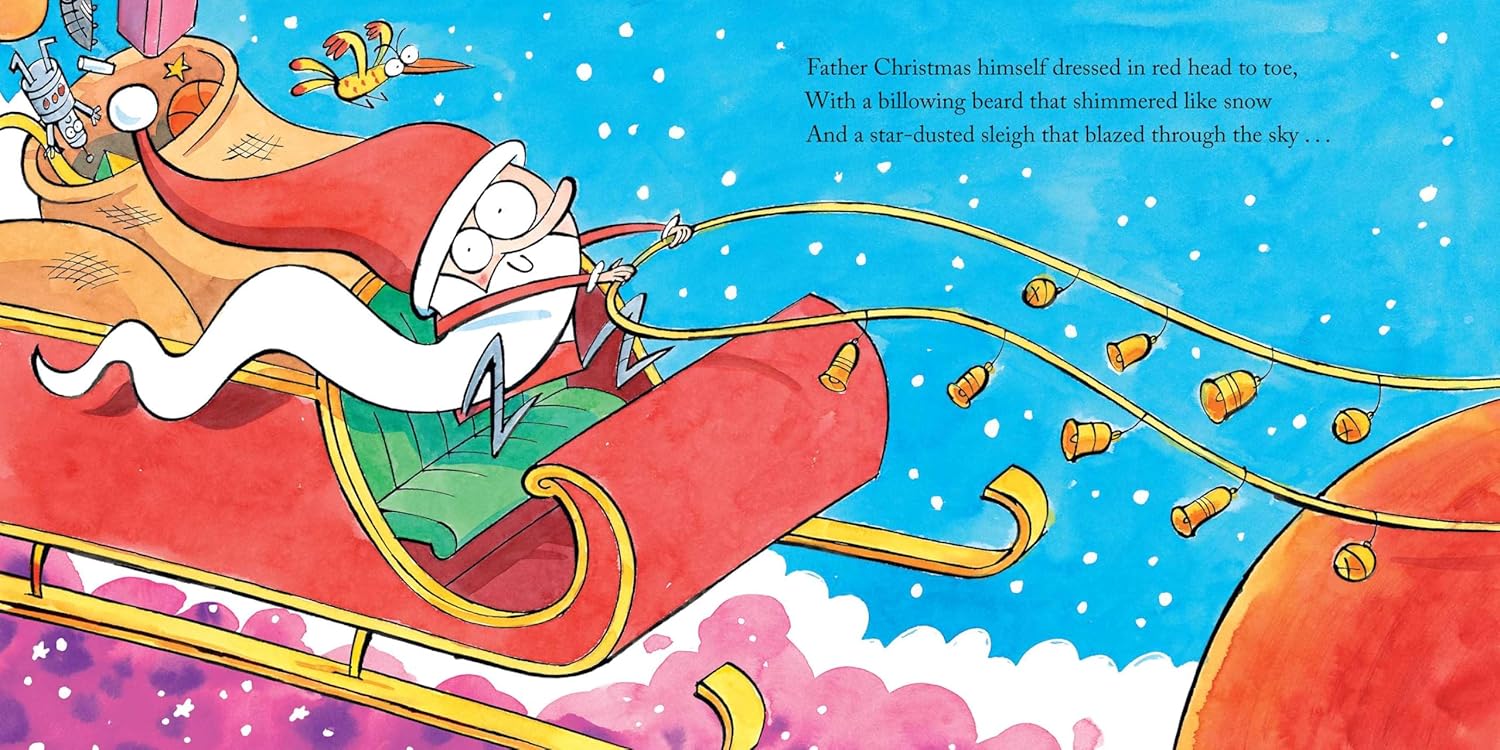 Meanwhile a star-dusted sleigh blazed through the sky,