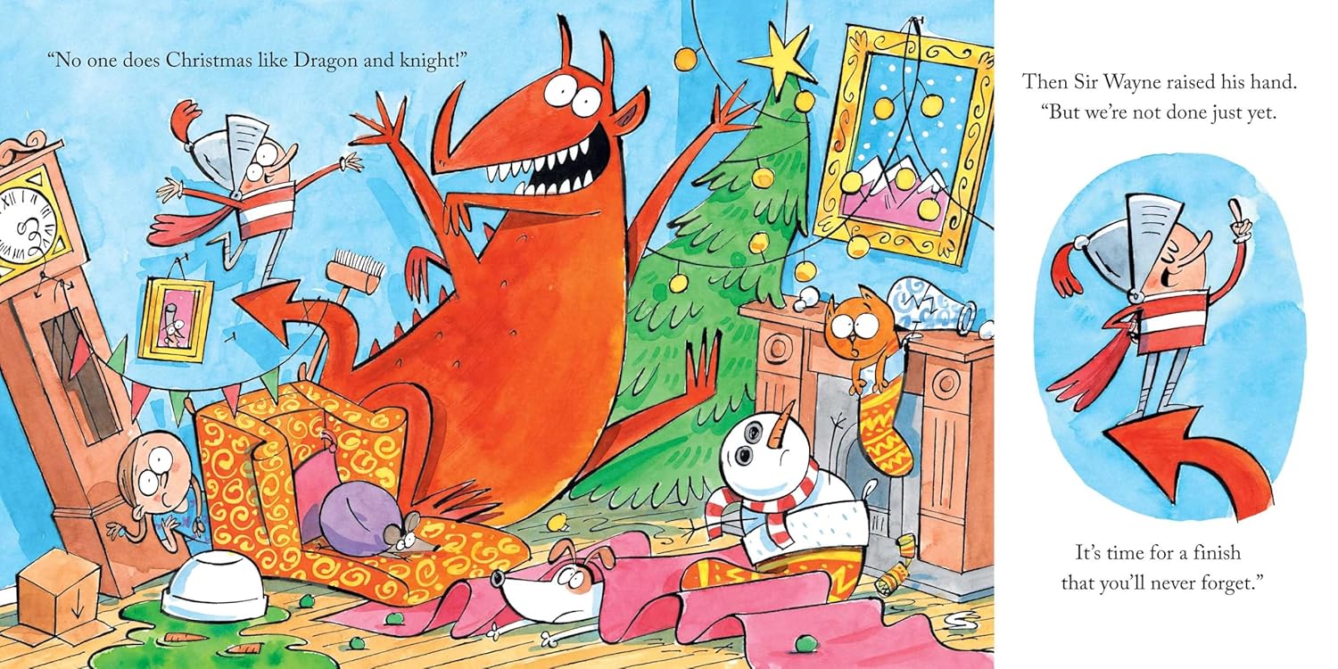 It's Christmas Eve, but Santa is nowhere to be seen. Luckily, Sir Wayne and Dragon are happy to step in. They know all Santa's moves - they're terrific with tinsel, their wrapping is rocking and just LOOK how much stuff they can fit in a stocking! But that's not all . . . They've got another trick up their sleeve that will make this Christmas go off with a show-stopping, snow-hopping, bum-popping BOOM . . .