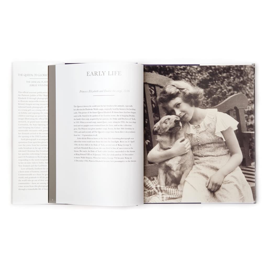 Delightfully informal family photographs of The Queen as a young girl, as a young wife and mother, on holiday and enjoying the company of her children and dogs are joined by more formal images illustrating the official life of the monarch, on grand state occasions, such as the Coronation, the State Opening of Parliament and Trooping the Colour – not to mention her memorable encounter with James Bond and her dramatic arrival at the ceremony marking the opening of the 2010 London Olympics.