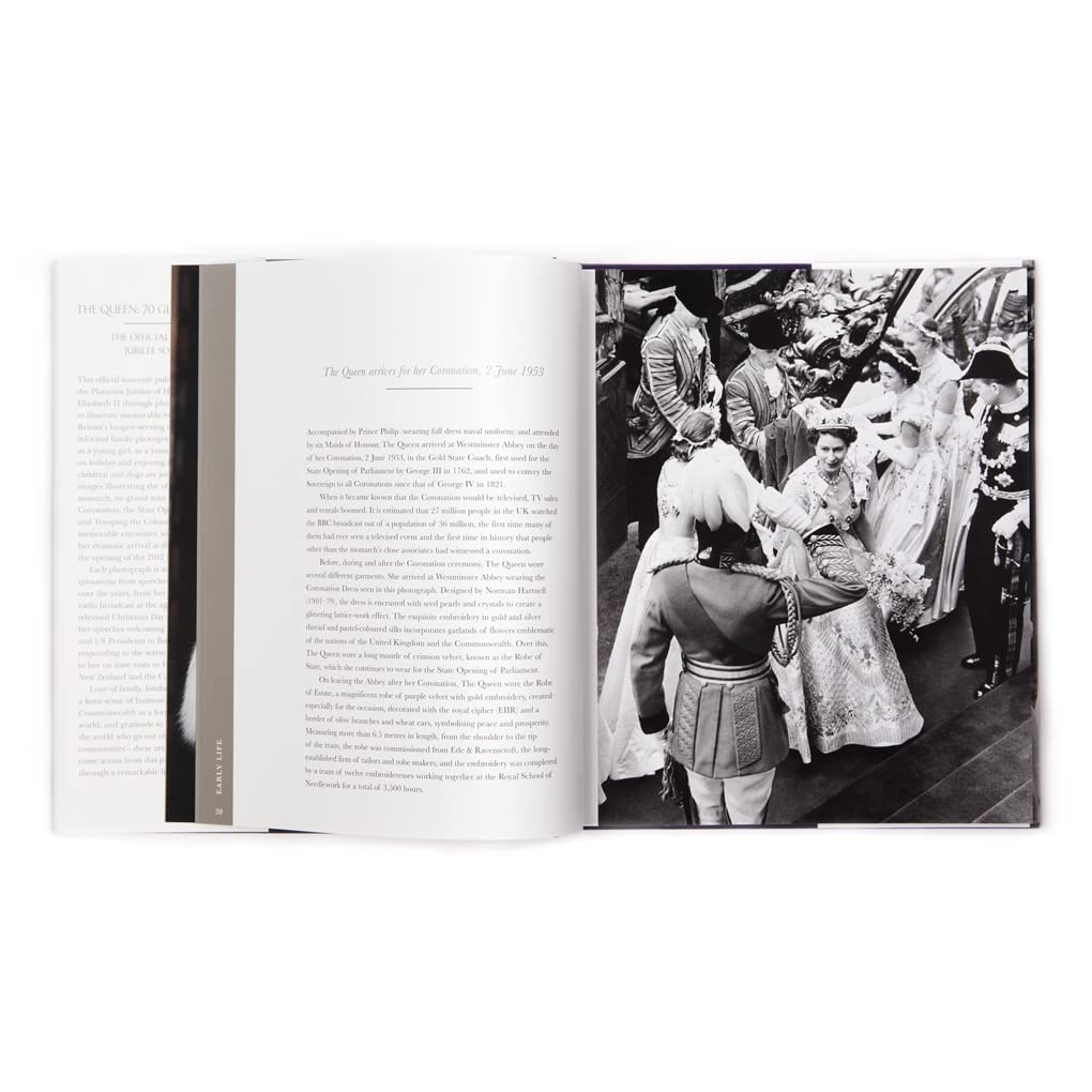 This official souvenir publication celebrates the Platinum Jubilee of Her Majesty Queen Elizabeth II through 70 photographs chosen to illustrate memorable events in the reign of Britain’s longest-serving monarch.