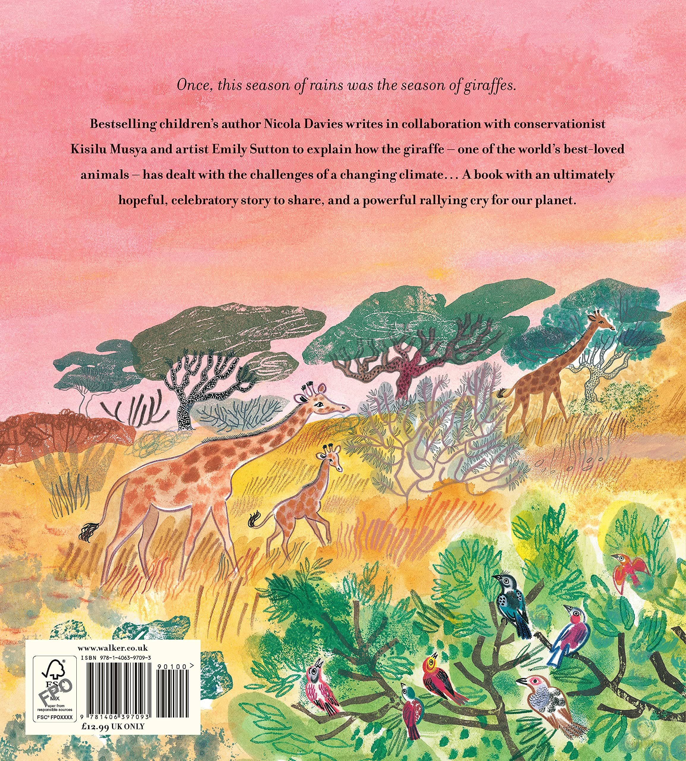 Once, this season of rains was the season of giraffes... In this powerful picture-book, bestselling children's author Nicola Davies writes in collaboration with conservationist Kisilu Musya to explain how one of the world's best-loved animals has dealt with the challenges of climate change. Giraffes were once a part of daily life in Niger - but after severe droughts one year, when the rains eventually return, the giraffes are nowhere to be seen. However, as award-winning artist Emily Sutton's magnificent illustrations capture, The Beauty of Giraffes ultimately has a hopeful, celebratory story to share ... and an important point to make about how human beings can change for the better.