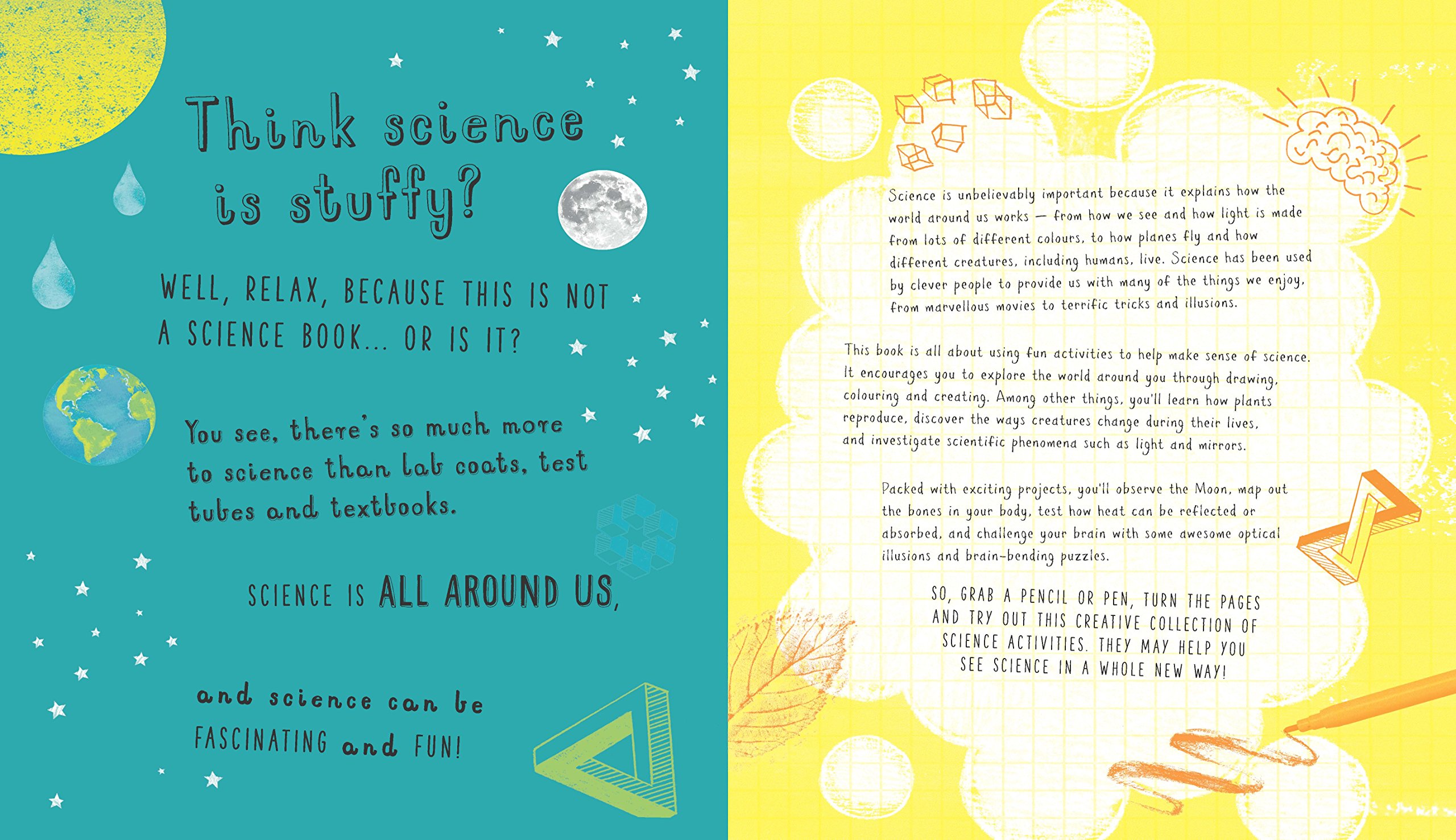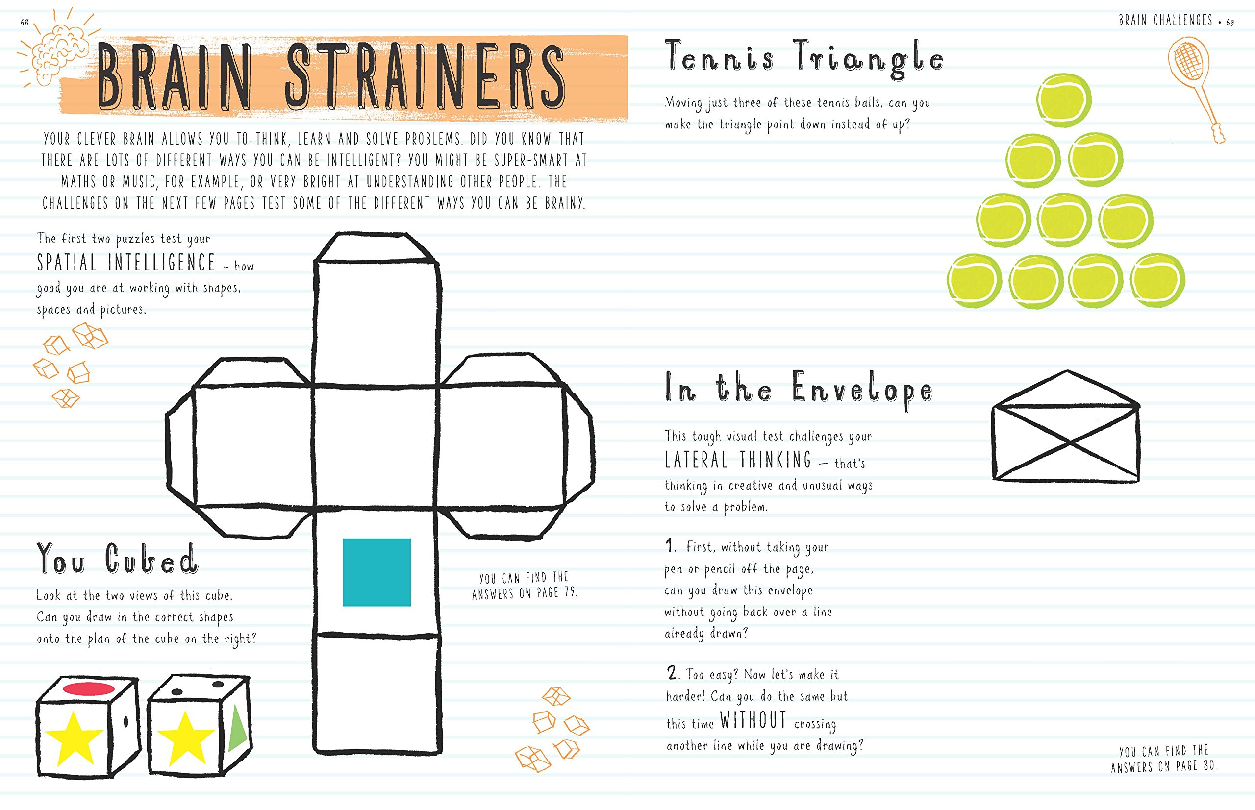 From mapping out bones in the body, building amazing spinning rotocopters, and brilliant brain puzzles, to monitoring the movements of the moon, taking a close-up look at creepy-crawlies, plus incredible optical illusions you can make yourself, the stimulating activities will get brains ticking and pens scribbling.