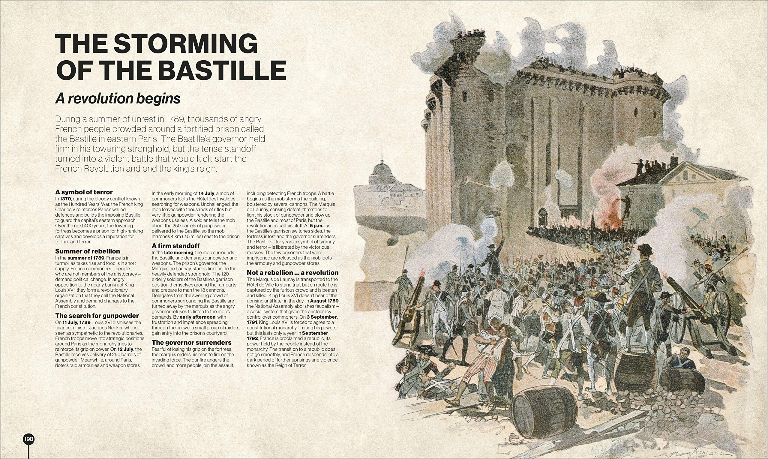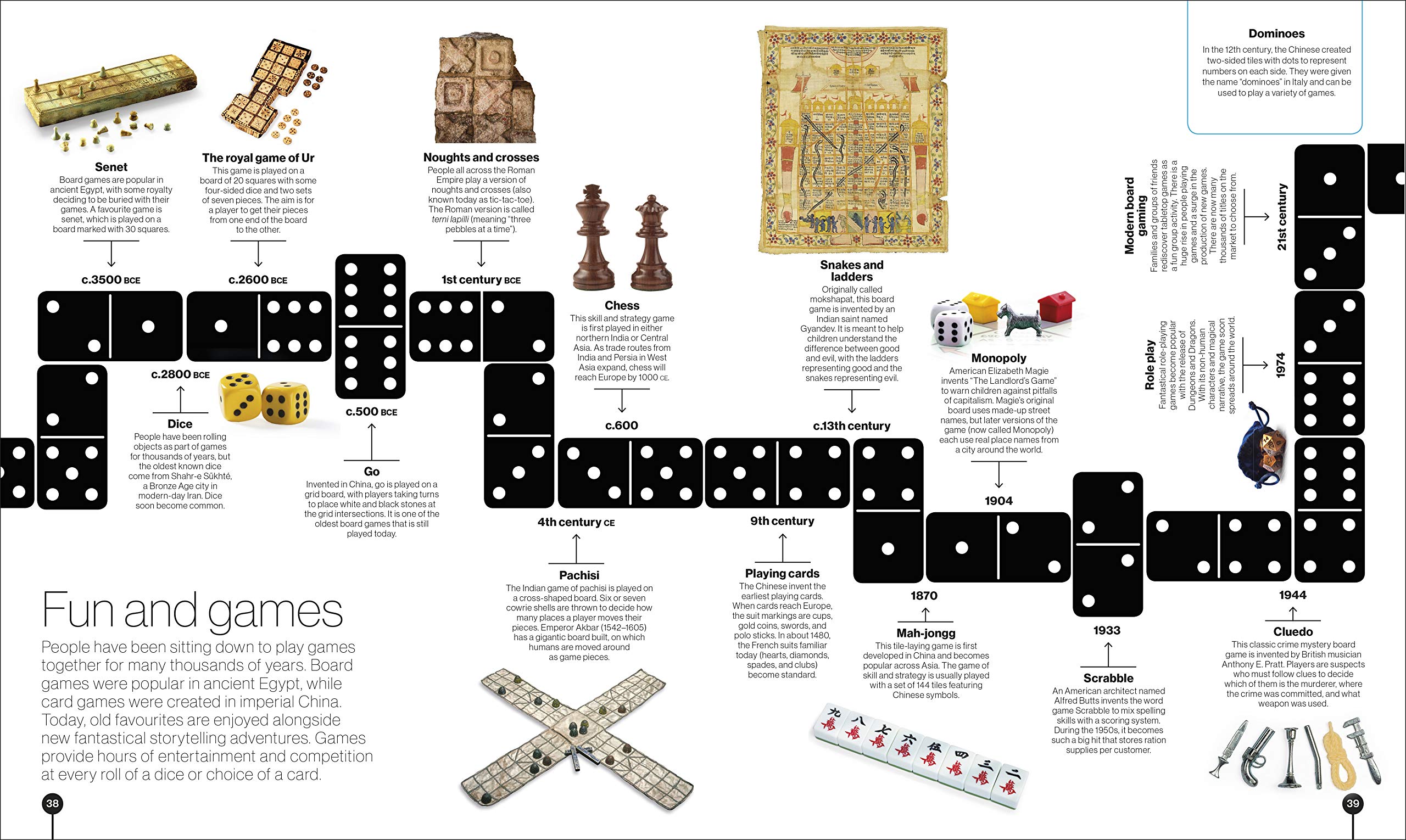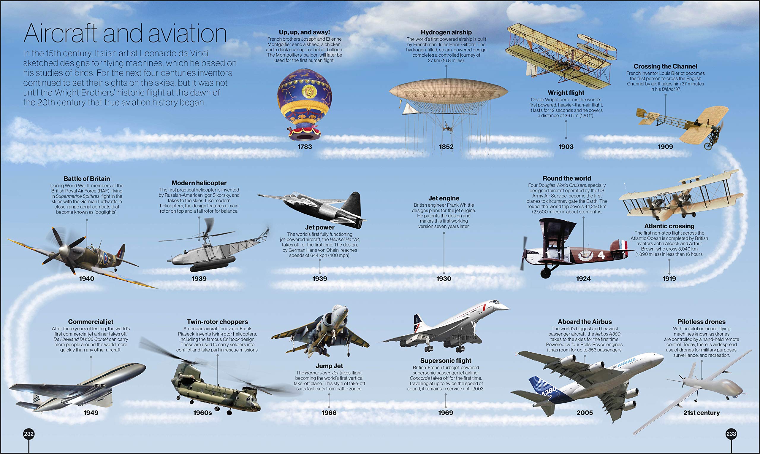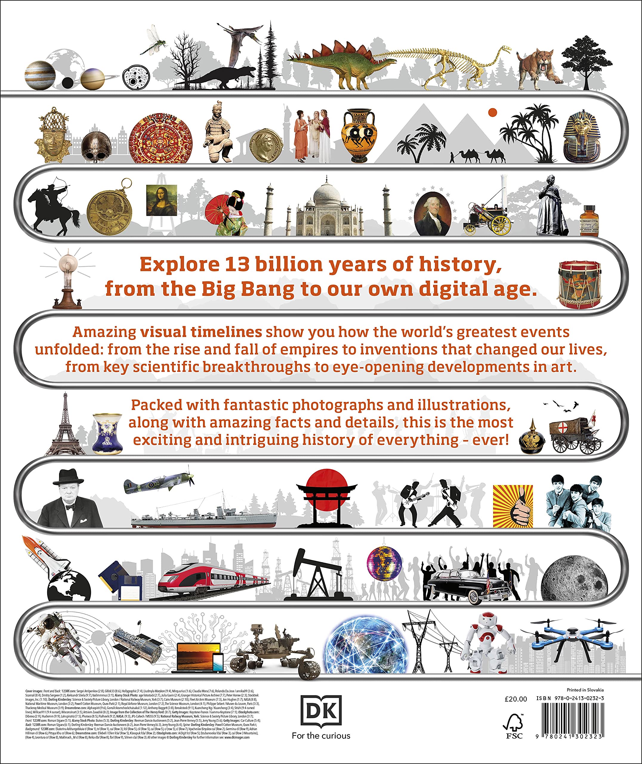 Witness history come alive as you travel through more than 130 stunning timelines. Discover an unprecedented collection of history timelines and a wealth of knowledge about the world, packed with fantastic photographs and illustrations, along with informative text and fun facts. The history book covers the rise and fall of empires to ground-breaking scientific breakthroughs and inventions that changed our lives.