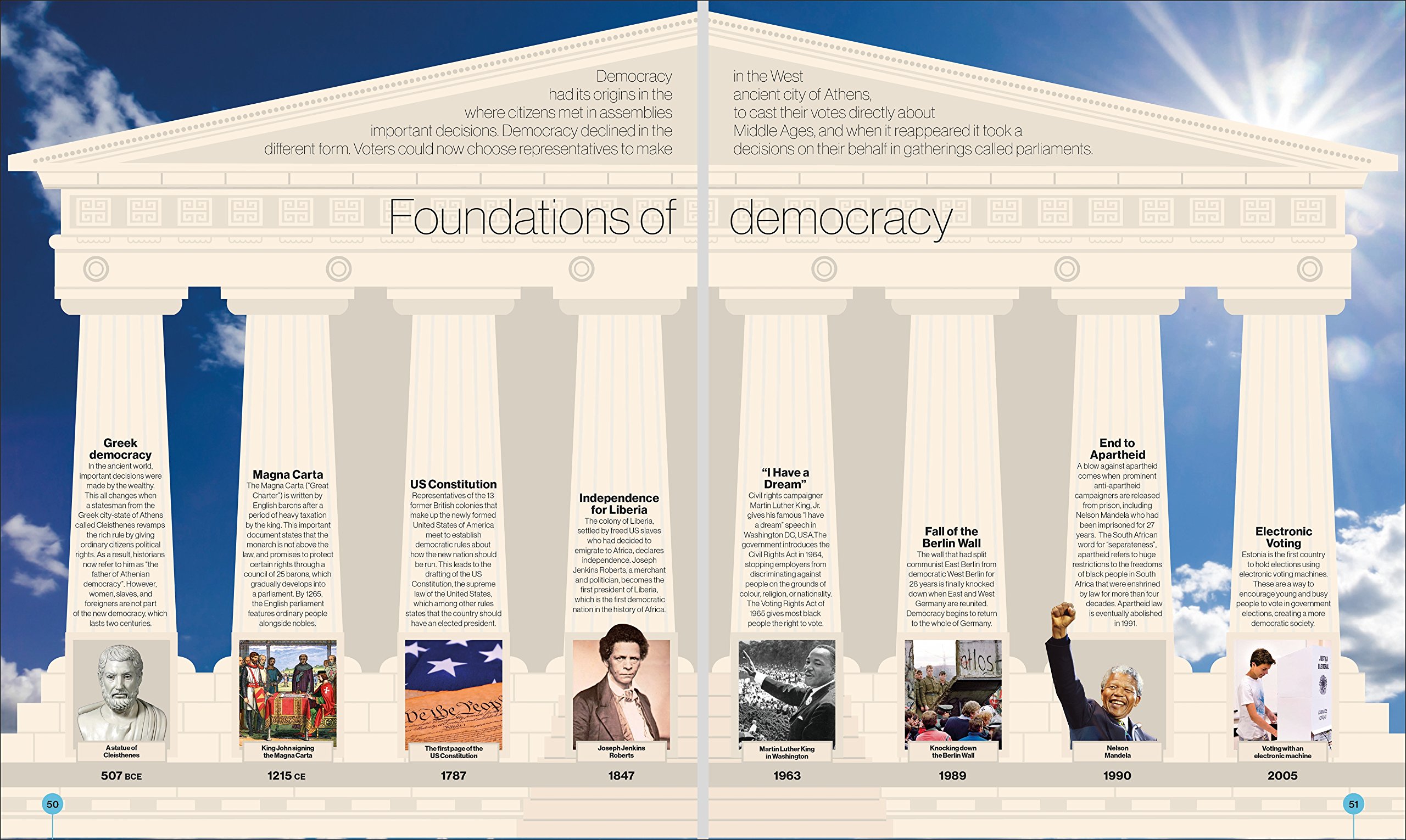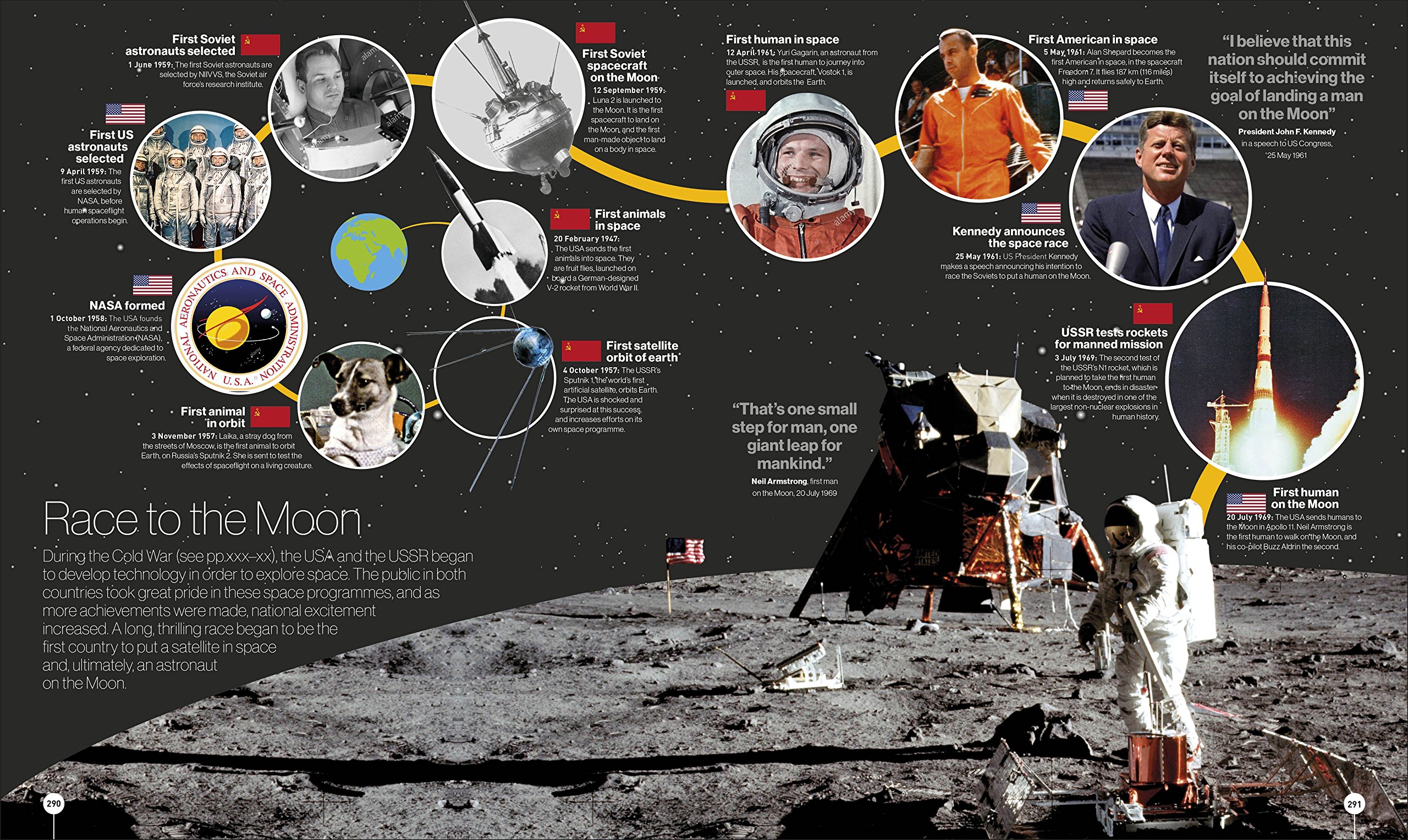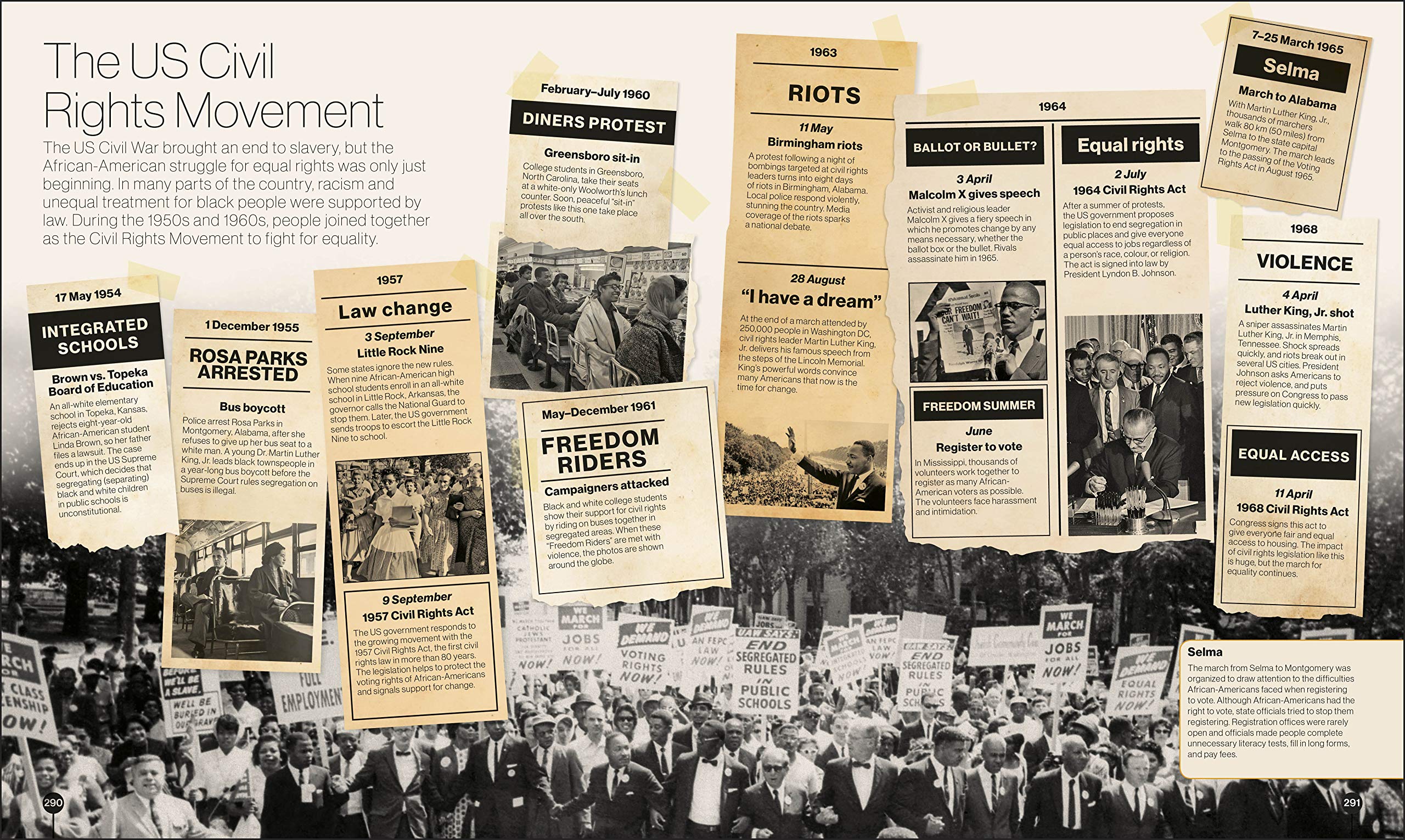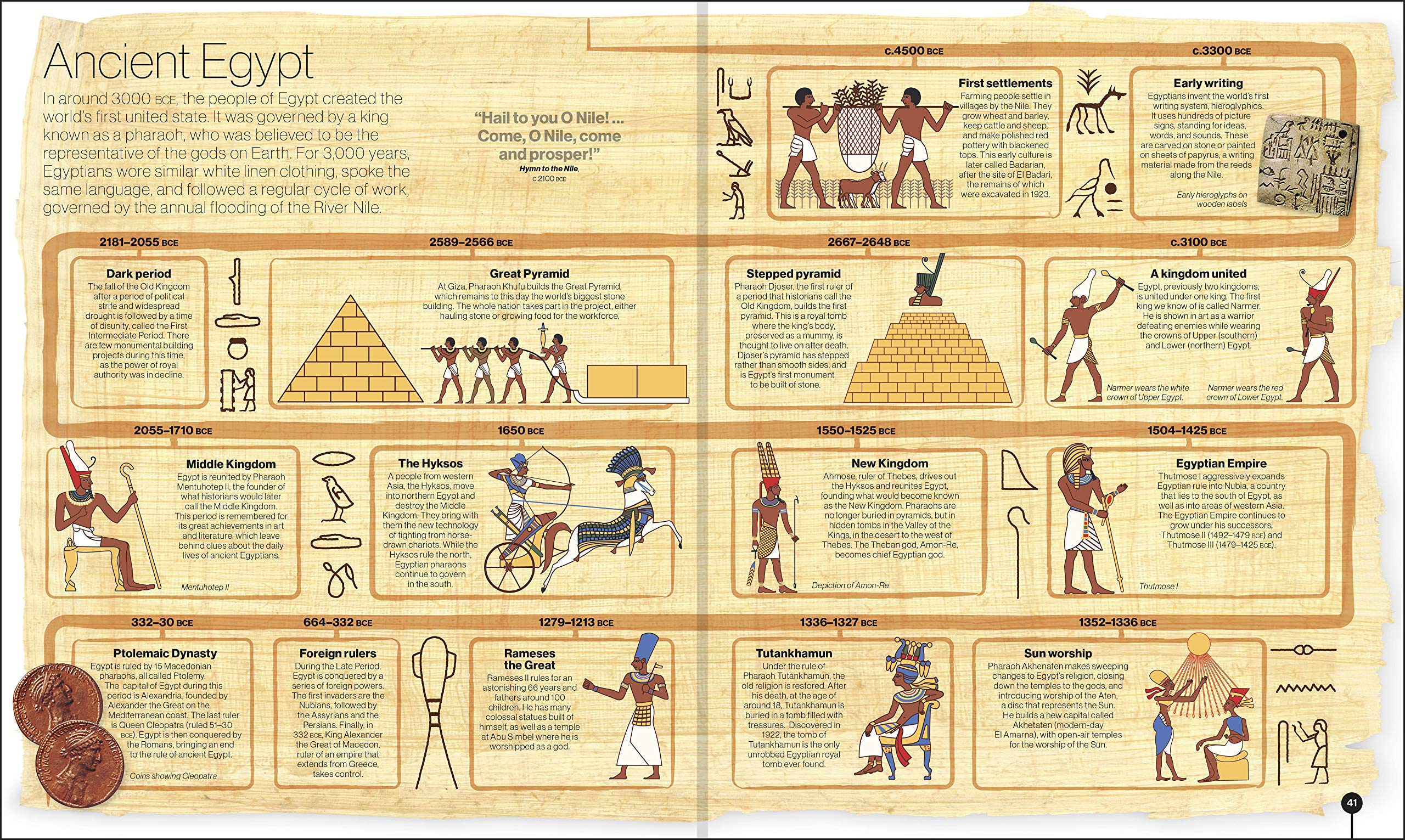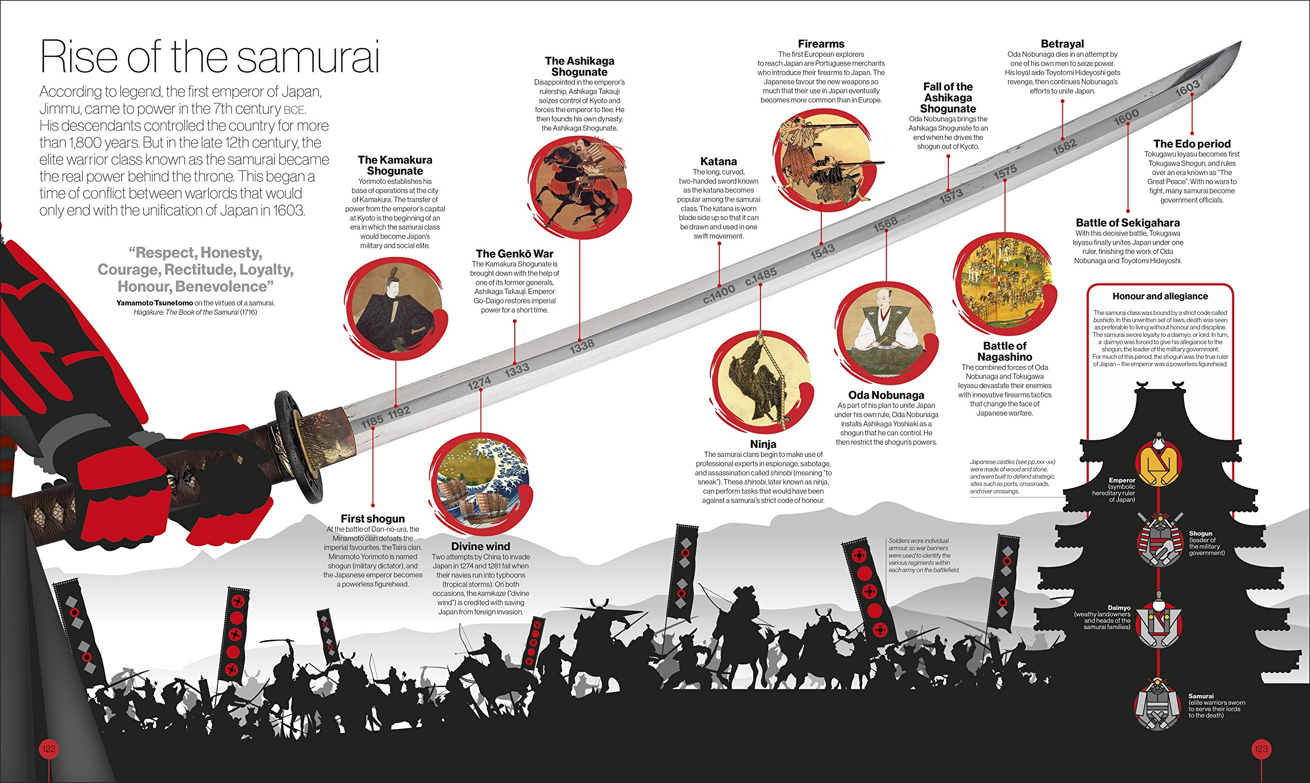 Witness history come alive as you travel through more than 130 stunning timelines. Discover an unprecedented collection of history timelines and a wealth of knowledge about the world, packed with fantastic photographs and illustrations, along with informative text and fun facts. The history book covers the rise and fall of empires to ground-breaking scientific breakthroughs and inventions that changed our lives.