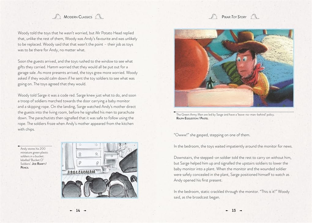 This beautiful hardback features an eye-catching foiled cover, and is the perfect gift for all those who have been entertained by Toy Story and a book to be treasured by all. A family favourite, Pixar Toy Story is one of the best-loved films of contemporary times. Relive the magic through this retelling of the animated film, accompanied by paintings, sketches and concept art from the original Pixar Studio artists. Also featured is a foreword by Jason Katz, Story Supervisor at Pixar Animation Studios. Turn to the back of the book to learn more about the artists who worked on this iconic animated film. Toy Story was the first film in the successful Toy Story film franchise. It was also Pixar's first feature-length film and the first entirely computer-animated feature film in history. Glimpse into this fascinating snapshot of animation history with this unique retelling. Other titles in the series: Encanto (Disney Modern Classic) and Moana (Disney Modern Classic) Coming soon: The Princess and the Frog (Disney Modern Classic) and Up (Pixar Modern Classic)