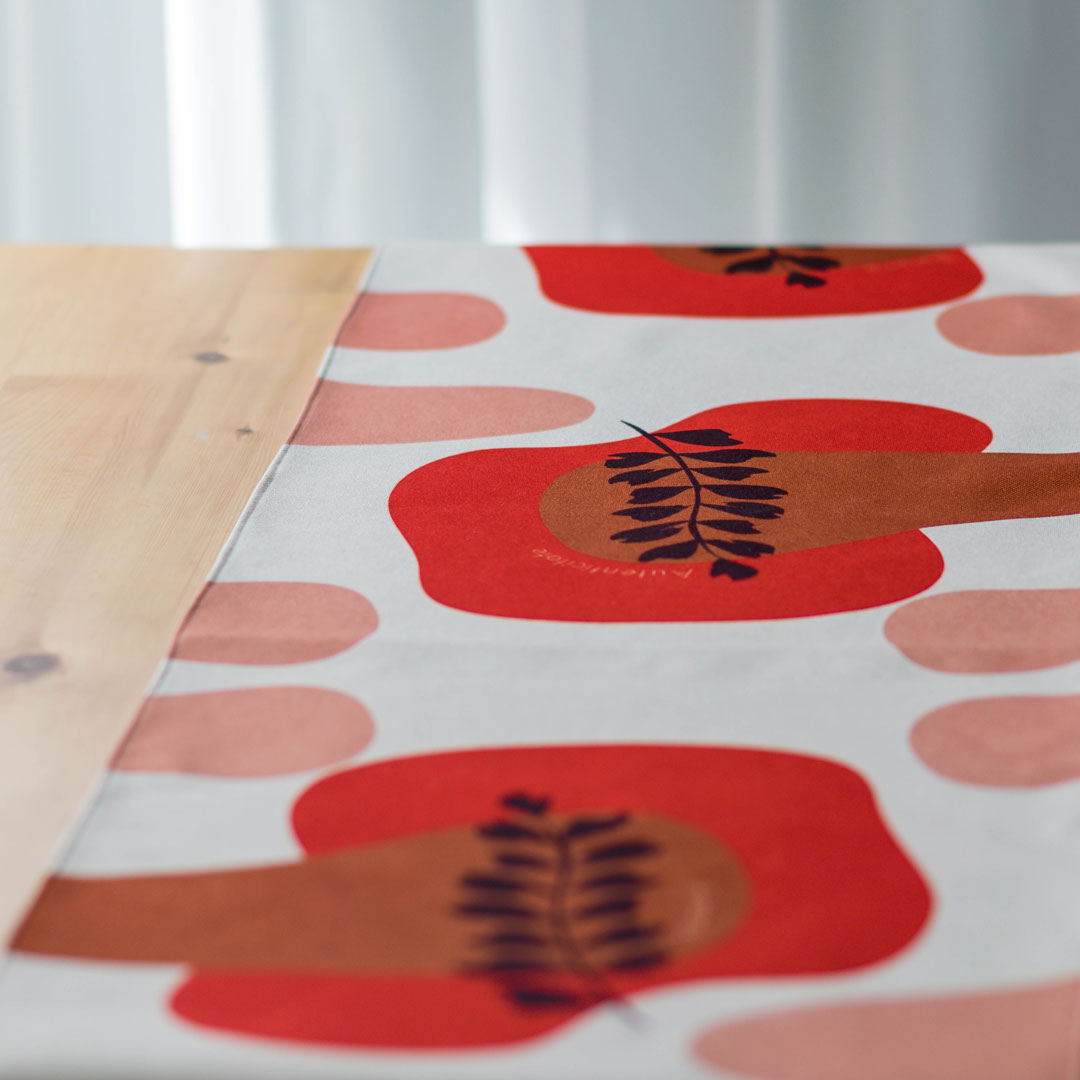 Traversa masa - "Red Leaf"Dimensiune: 200×40 cmMaterial: Poliester imprimat cu cerneala ecologica,Produsul se poate spala la 40 grade C