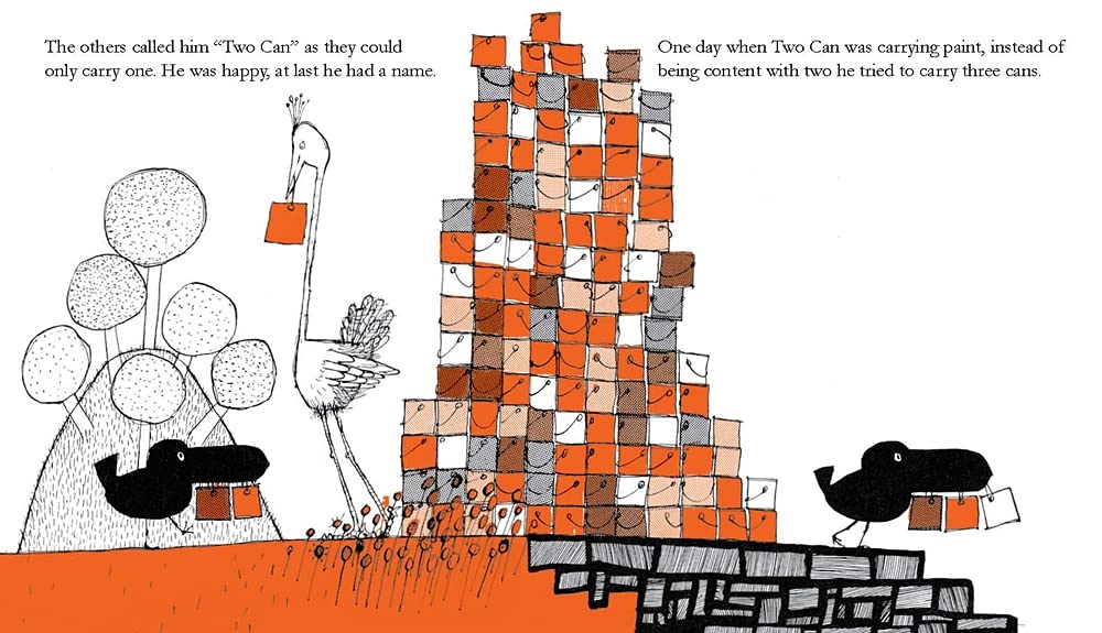 There was once a bird in the forest that was completely black, except for his white eyes, who was laughed at by all the other animals because he did not have a name. So he must go to seek his fortune.