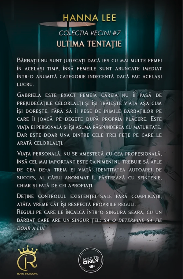 Deține controlul existenței sale fără complicații, atâta vreme cât își respectă propriile reguli. Reguli pe care le încalcă într-o singură seară, cu un bărbat care are un singur țel: să o determine să fie doar a lui.