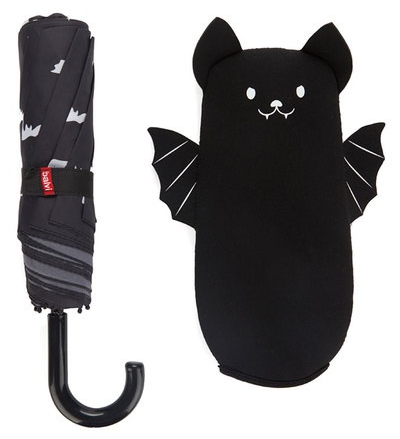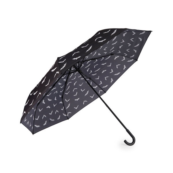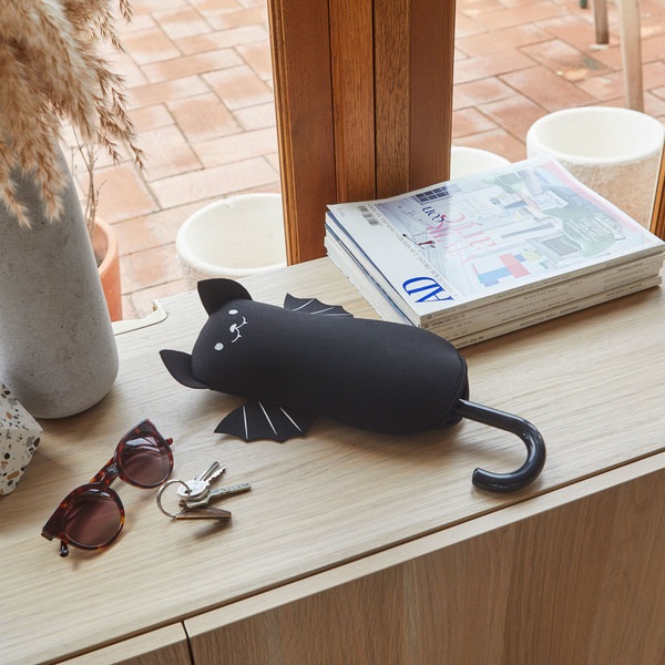 • Husă de umbrelă cu design liliac. Umbrela are un model haios. Mânerul simulează coada liliacului când este închis.