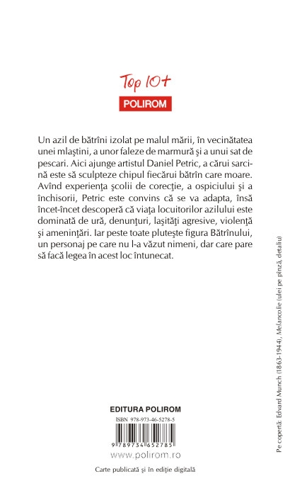 Un azil de batrini izolat pe malul marii, in vecinatatea unei mlastini, a unor faleze de marmura si a unui sat de pescari. Aici ajunge artistul Daniel Petric, a carui sarcina este sa sculpteze chipul fiecarui batrin care moare. Avind experienta scolii de corectie, a ospiciului si a inchisorii, Petric este convins ca se va adapta, insa incet-incet descopera ca viata locuitorilor azilului este dominata de ura, denunturi, lasitati agresive, violenta si amenintari. Iar peste toate pluteste figura Batrinului, un personaj pe care nu l-a vazut nimeni, dar care pare sa faca legea in acest loc intunecat.