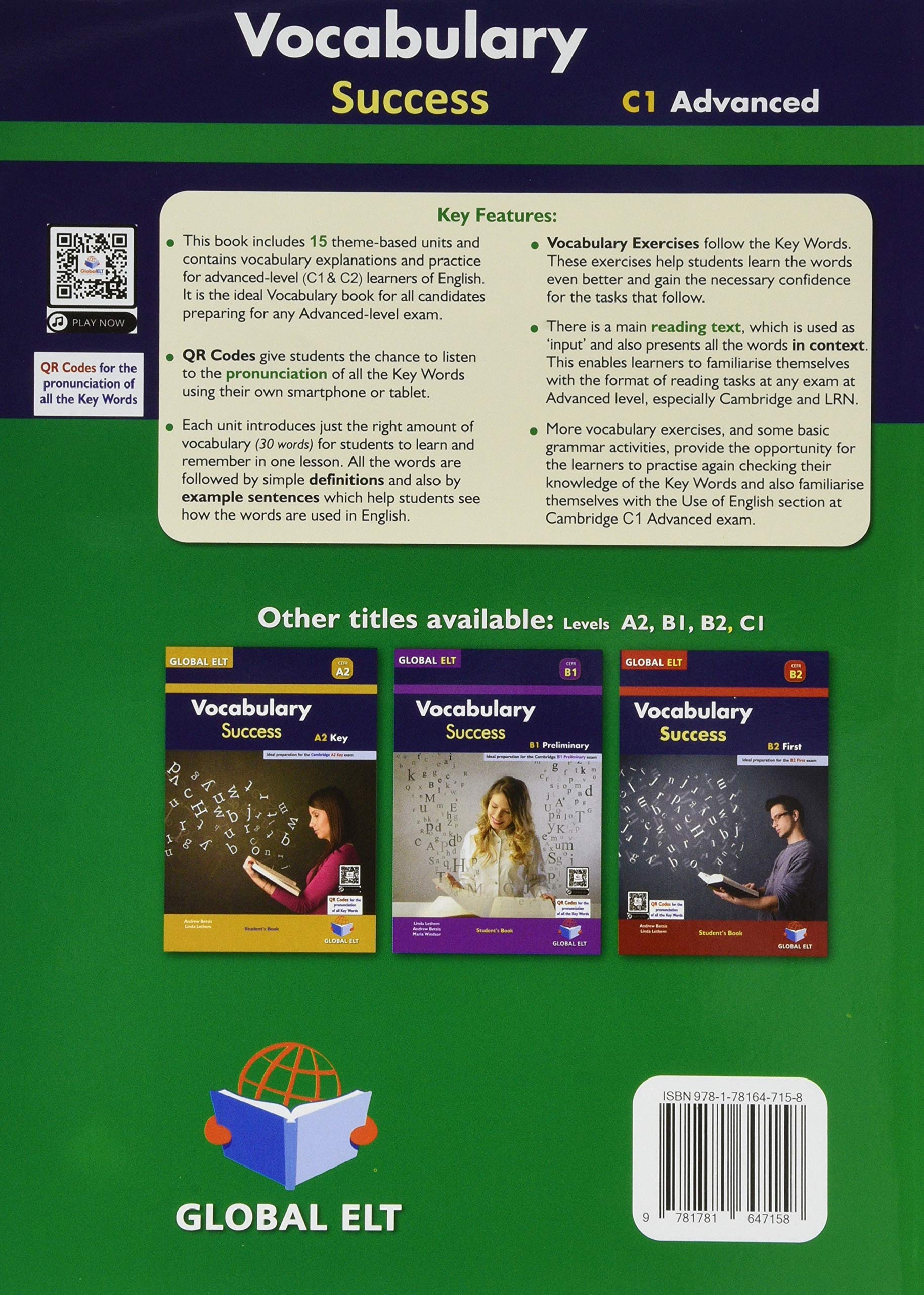 - The book contains vocabulary explanations and practice for advanced-level (C1& C2) learners of English. It is the ideal Vocabulary book for all candidates preparing for any Advanced-level exam.