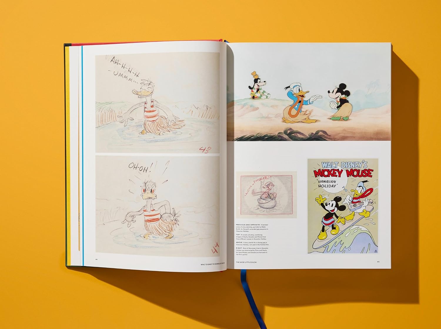 With unprecedented access to Disney’s vast historical archives and collections as well as public and private collections, the authors illuminate Donald’s life story with rare concept art, story sketches, background paintings, animation, and comic drawings as well as historical photographs. We encounter the work of all major Donald artists in both film and comics who defined his character, including a vast tribute to the “Duck Man” himself, master storyteller Carl Barks, alongside unseen early storyboard drawings.