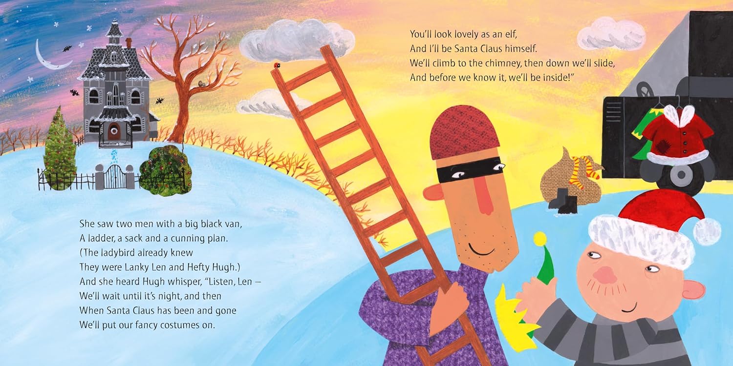 In a big old house, the ladybird is visiting her friend the spider for the festive season. But those two bad men, Hefty Hugh and Lanky Len, are up to no good again. They have a devious plan – to steal the children's Christmas presents from their stockings! It's a good thing that the clever little ladybird has overheard their awful plotting, and she has a cunning plan to make sure they don't get away with it.