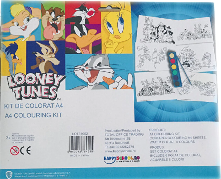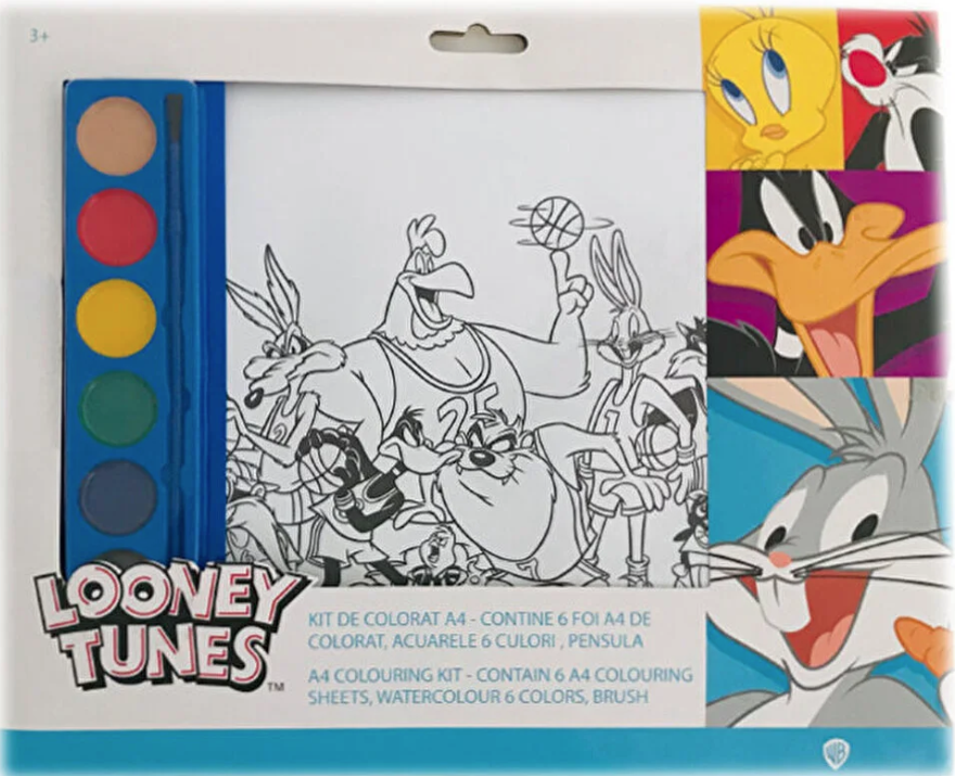 Kit de colorat cu 6 foi A4, acuarele cu 6 culori si 1 pensula.
