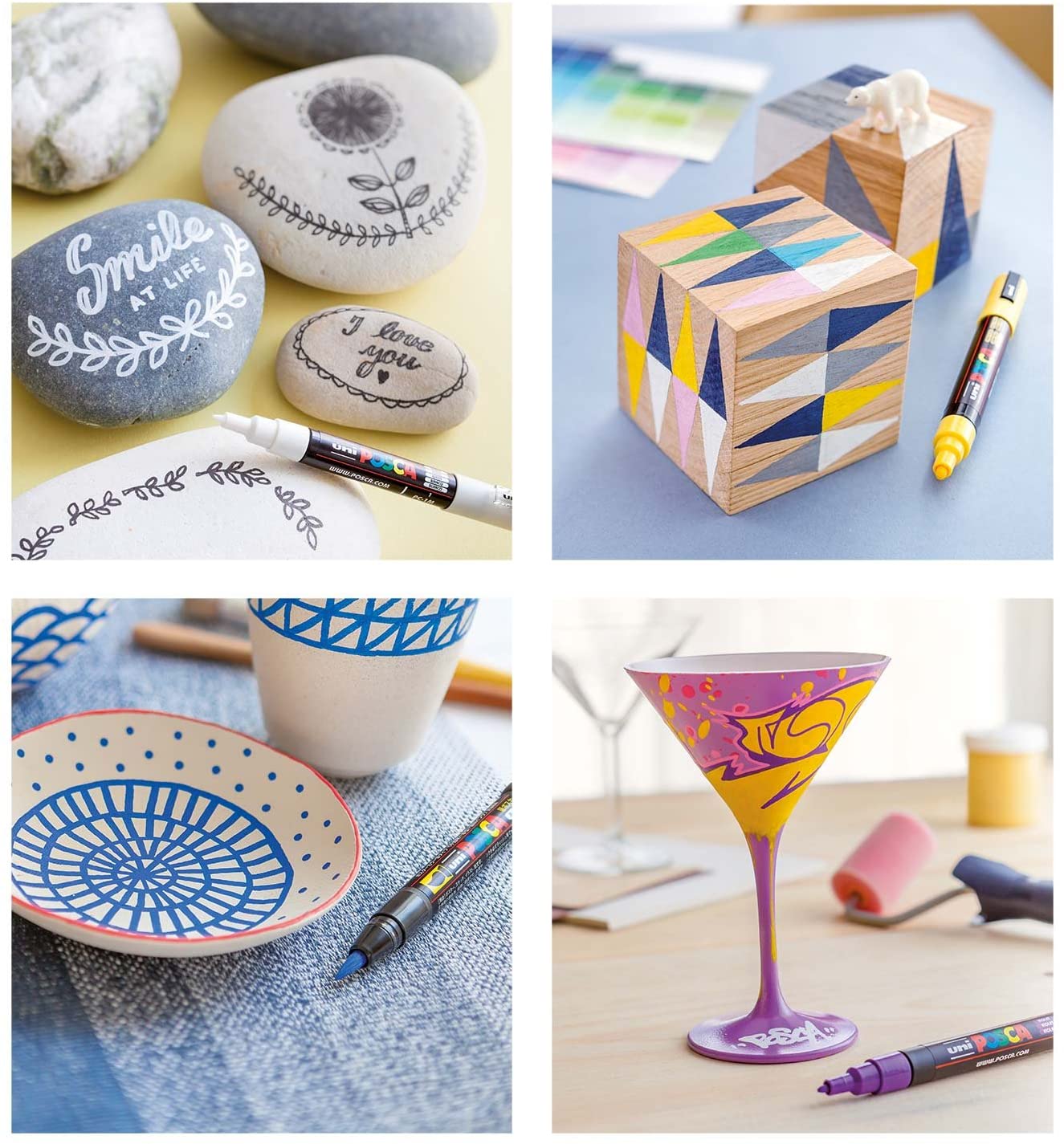 Acest marker cu vârf fin metalic, scrie pe majoritatea suprafețelor: hârtie, metal, plastic, sticlă, piatră, pânză și țesătură, iar vopseaua acestuia este pe bază de apă, nu are miros și nu este toxică.