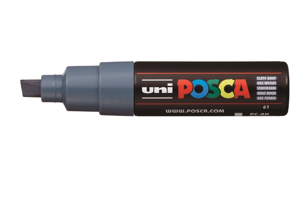 Markerul PC-8K cu vârful lat, în formă de daltă, poate desena curbe clare cu efect de scriere caligrafică sau, poate colora suprafețe largi. Disponibil într-o gamă largă de culori, PC-8K este ideal pentru a desena sau colora pe suprafețe mari, pentru marcaje de tot felul, pentru creații de street art, scriere caligrafică sau taguri.