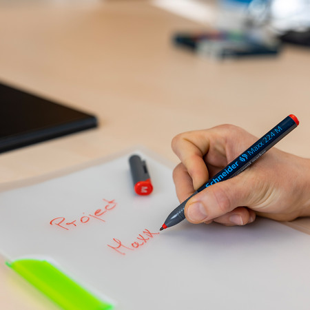 Marker universal permanent, culoare de scris roșu, lățime medie de linie (M) aprox. 1,0 mm. Pentru scris pe folii transparente (OHP), hârtie, plastic, sticlă, metal și aproape toate celelalte materiale.