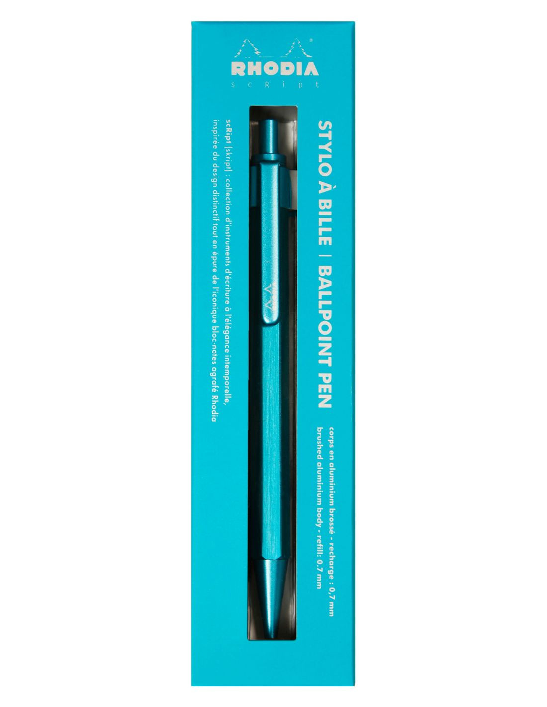 Pix reîncărcabil Rhodia ScRipt, turcoaz flexibil și ușor, vârful alunecă perfect pe hârtie pentru o scriere fluidă și precisă.