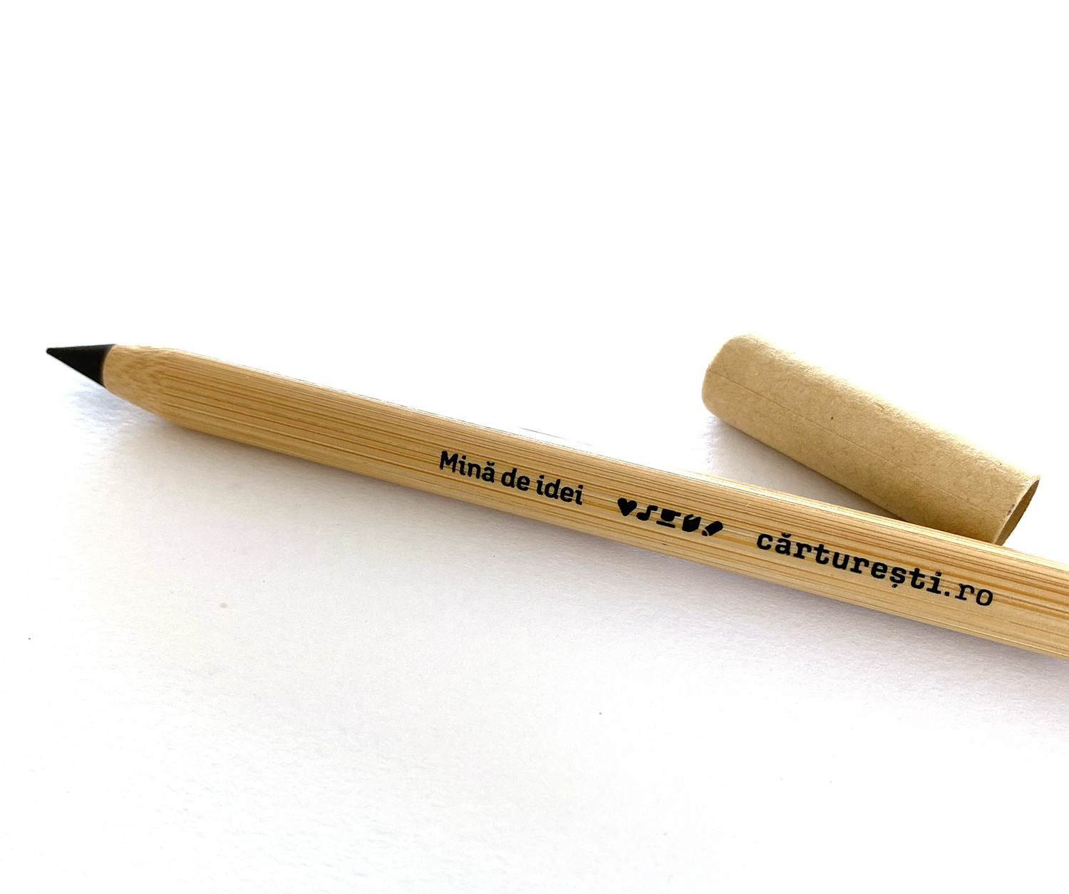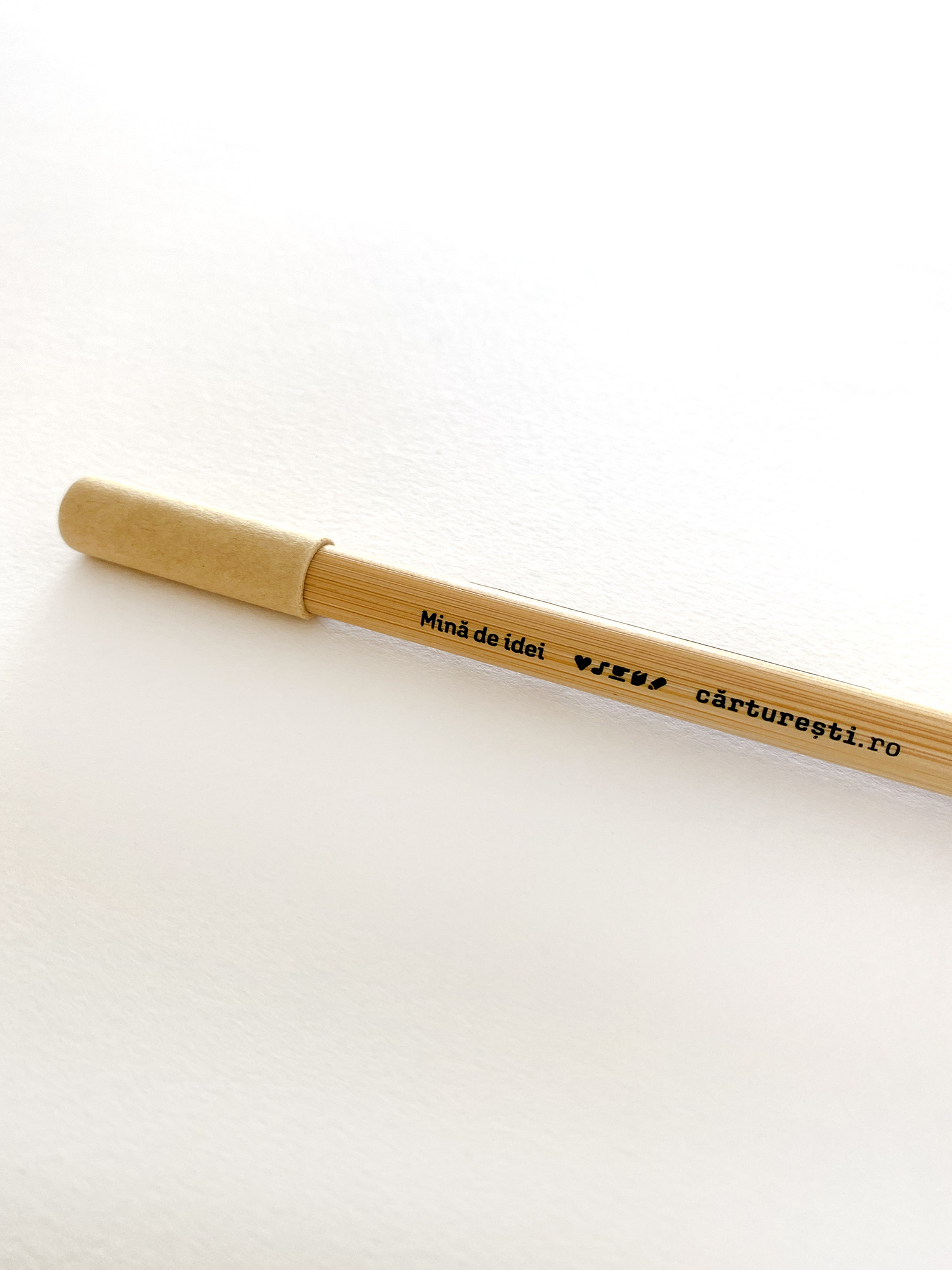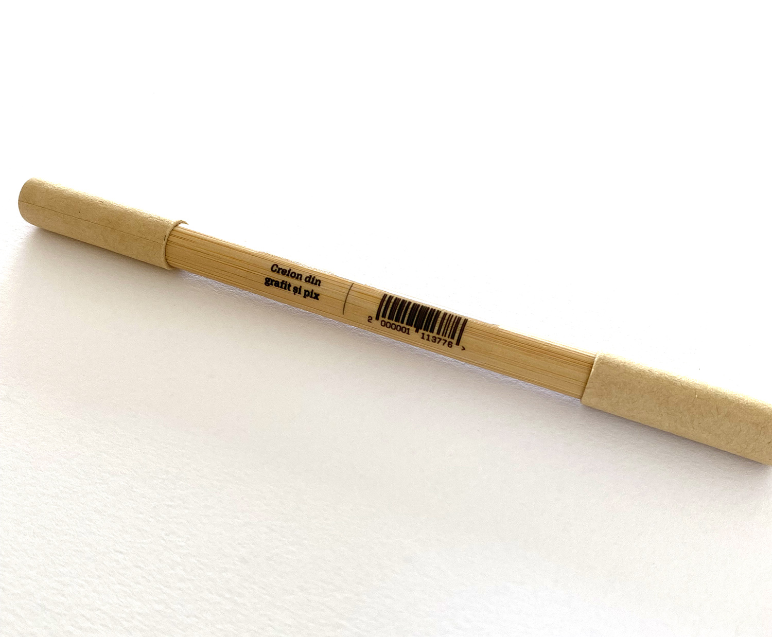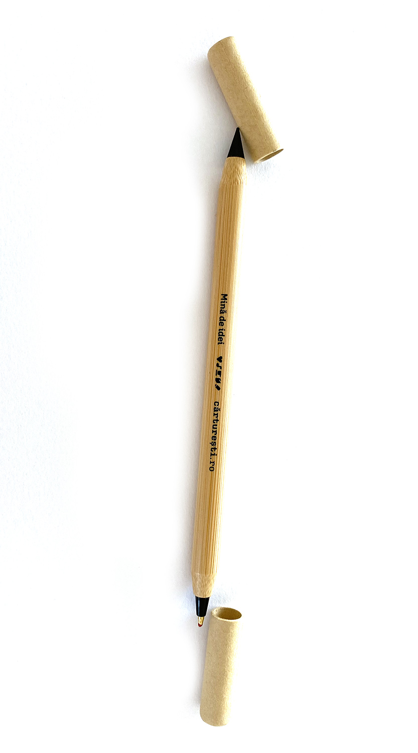 Pix din bambus cu două capete: 1 pix și un vârf din grafit, fără cerneală. Partea fără cerneală nu necesită cartușe de cerneală sau reumplere. Vârful din grafit negru al pixului este conceput pentru a lăsa urme vizibile pe măsură ce intră în contact cu suprafața de scris. Alegerea unui instrument de scris din bambus promovează luarea unor alegeri mai durabile și încurajează utilizarea materialelor regenerabile. Pixul are cerneală albastră, vârf de 1 mm și o lungime de scriere de 600 de metri. Lungimea scrisului pentru capătul fără cerneală: 1500 de metri.