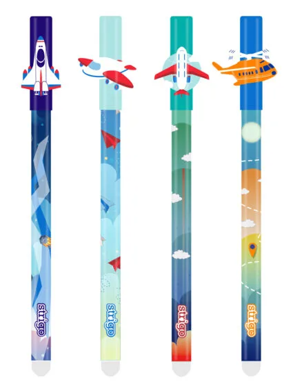 STRIGO îți oferă un pix care poate fi șters, din colecția Avioane, cu capac și un design jucăuș, ideal pentru elevi sau pasionații de spațiu. Acesta vine cu un cartuș albastru reîncărcabil și un vârf fin, care asigură o scriere ușoară și precisă.