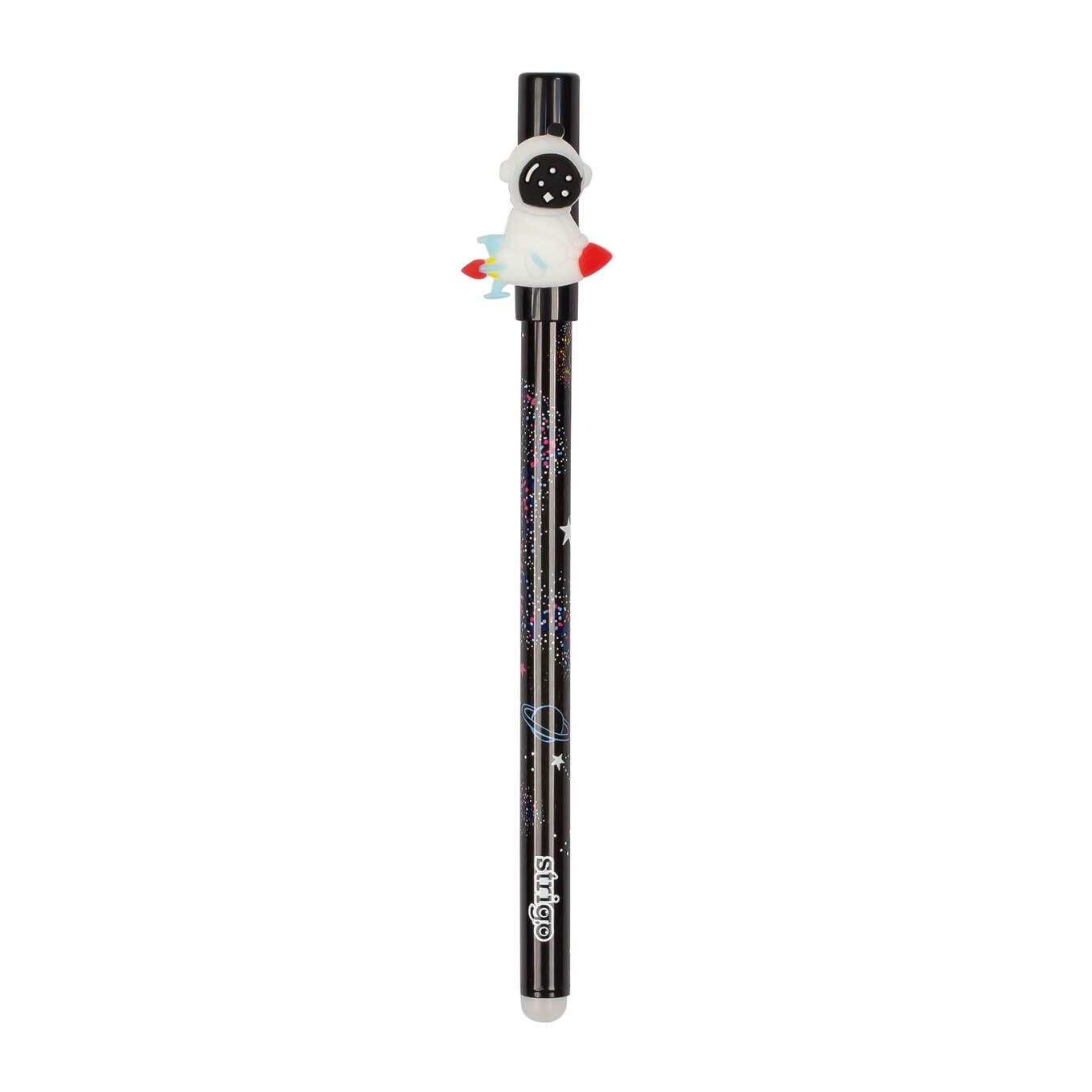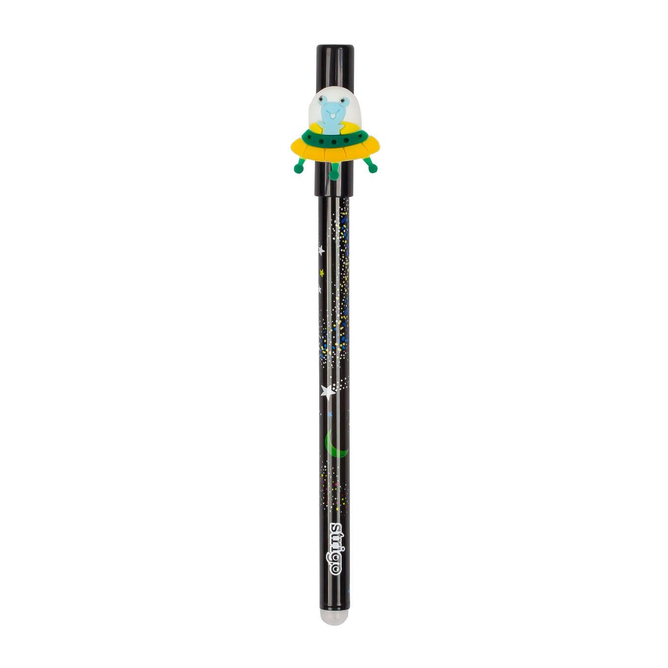 Pixul STRIGO cu cerneală termosensibilă și capac, cu tema Cosmos, cu rezerve albastre interschimbabile.